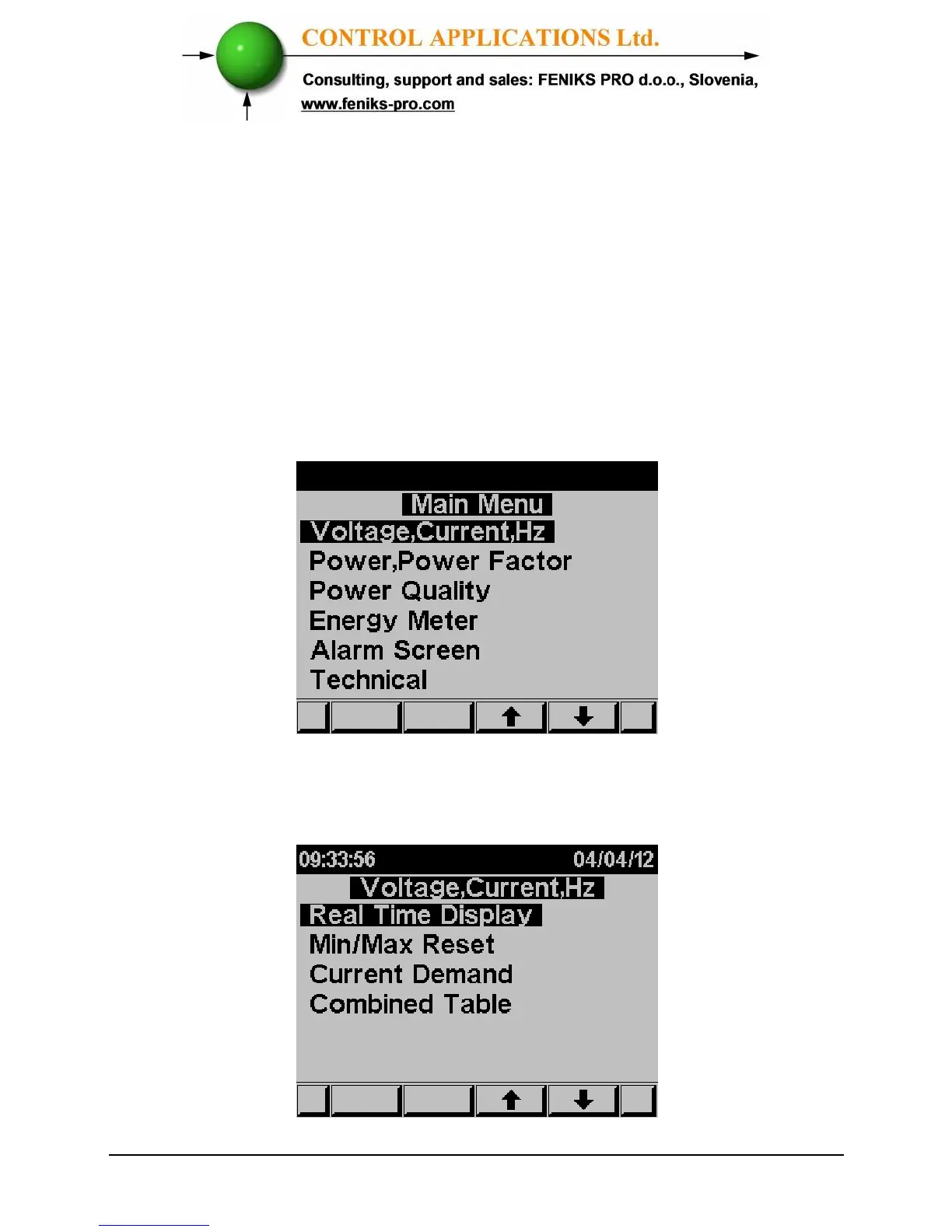 1 From Main Menu scroll to Voltage, Current, Hz.