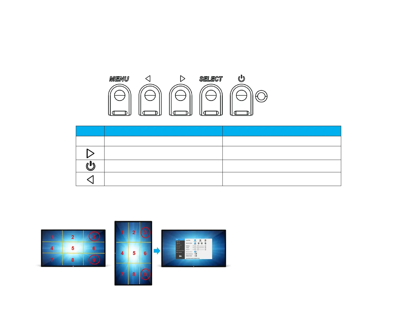 *Note that only accept single touch to activate OSD menu and each click no longer than 3 seconds.