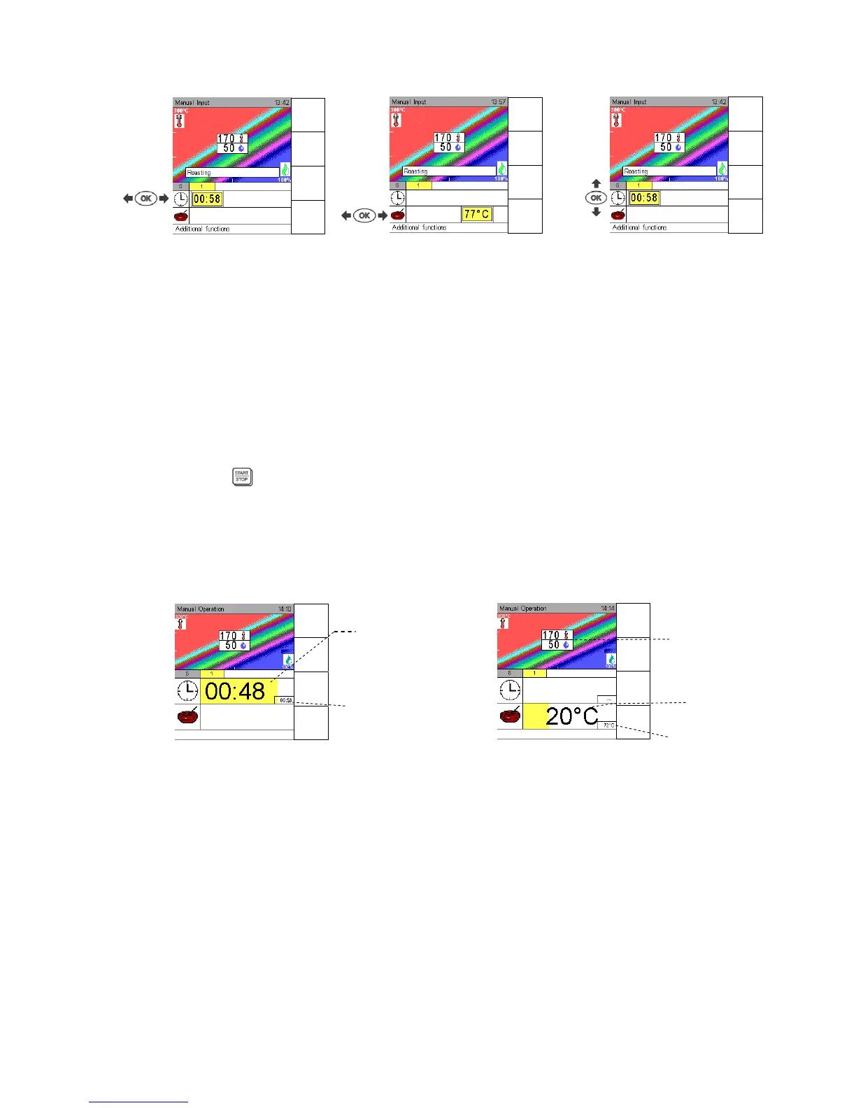 3. Use the direction arrows and to change between the input fields for time, core temperature and