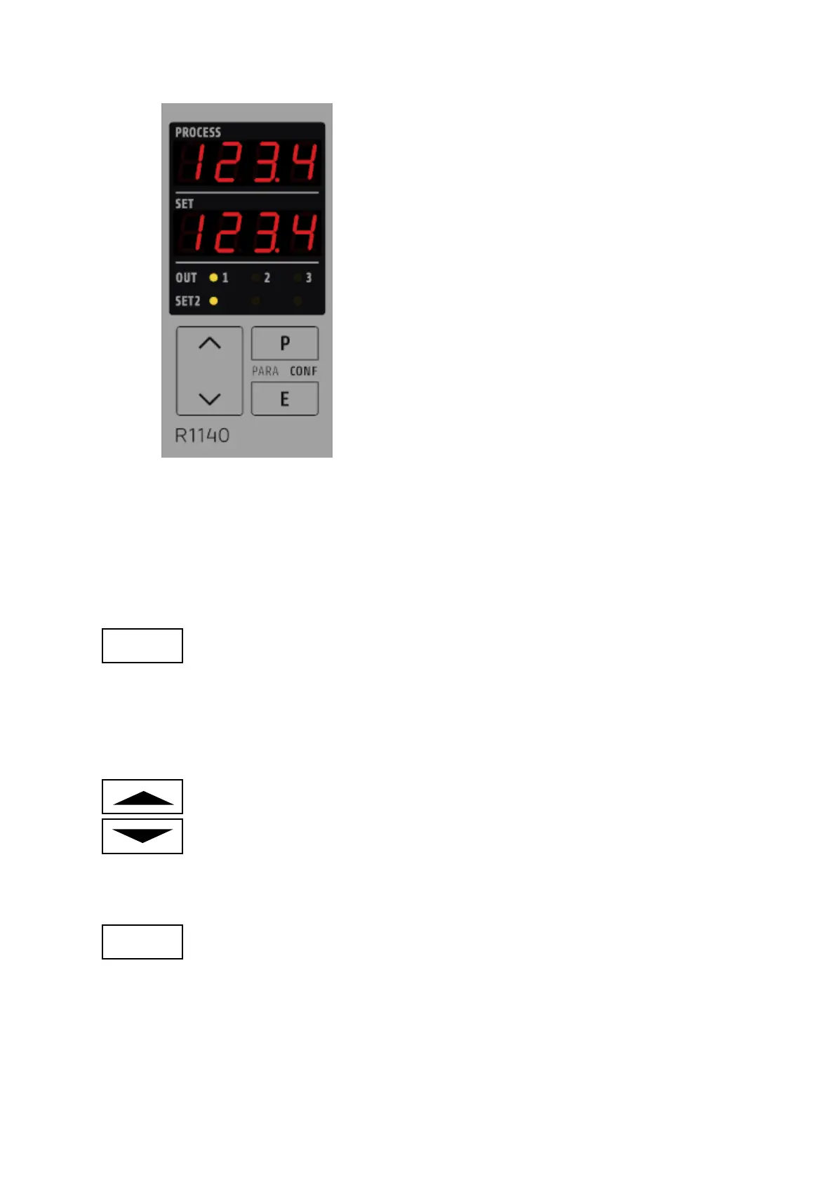 To return to the process- and setpoint-display: press „E“ appr. 2 sec..