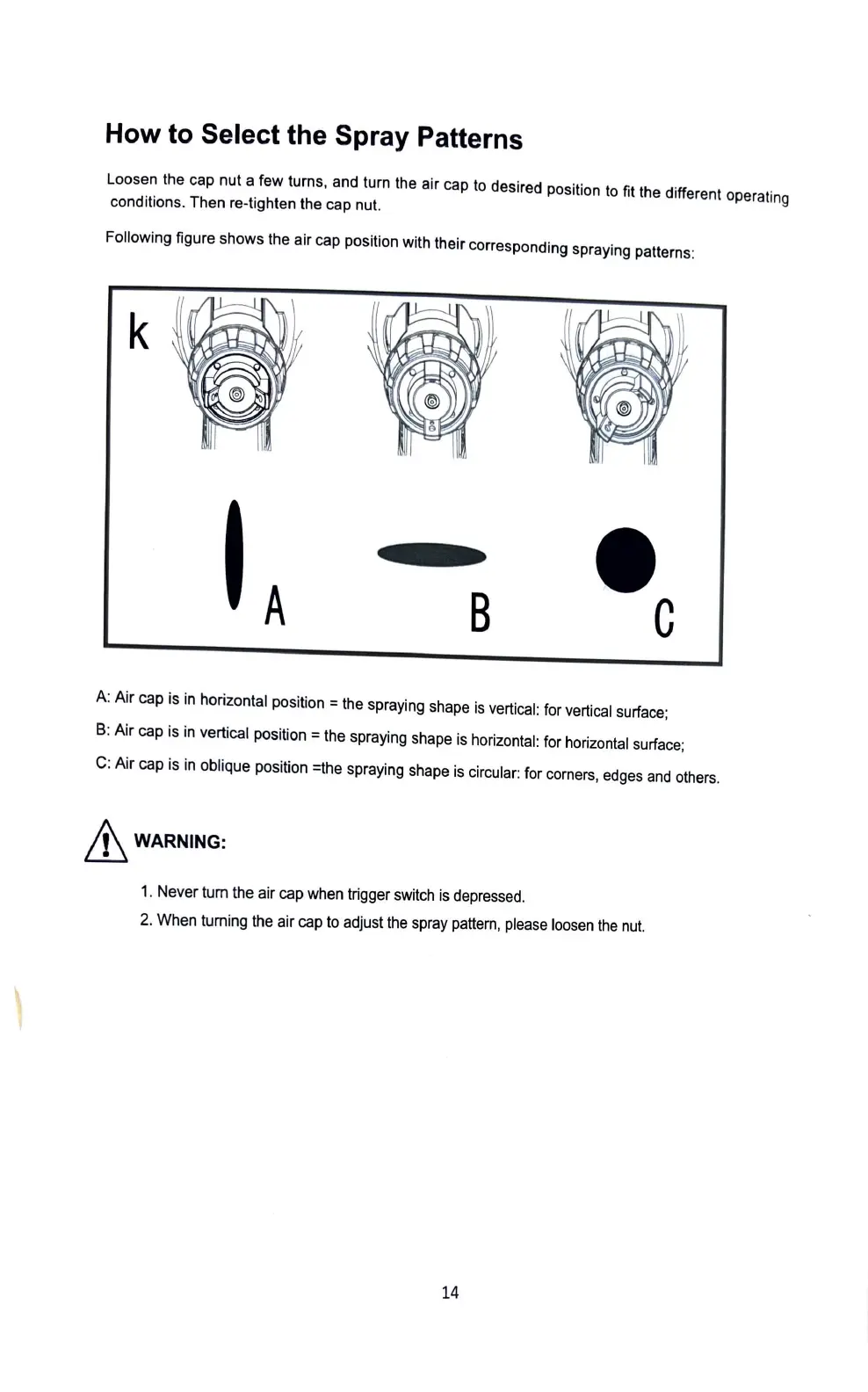 1. Never tum the air cap when trigger switch is depressed.