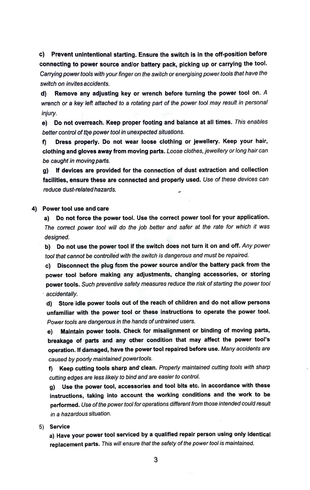 Power tool use and care