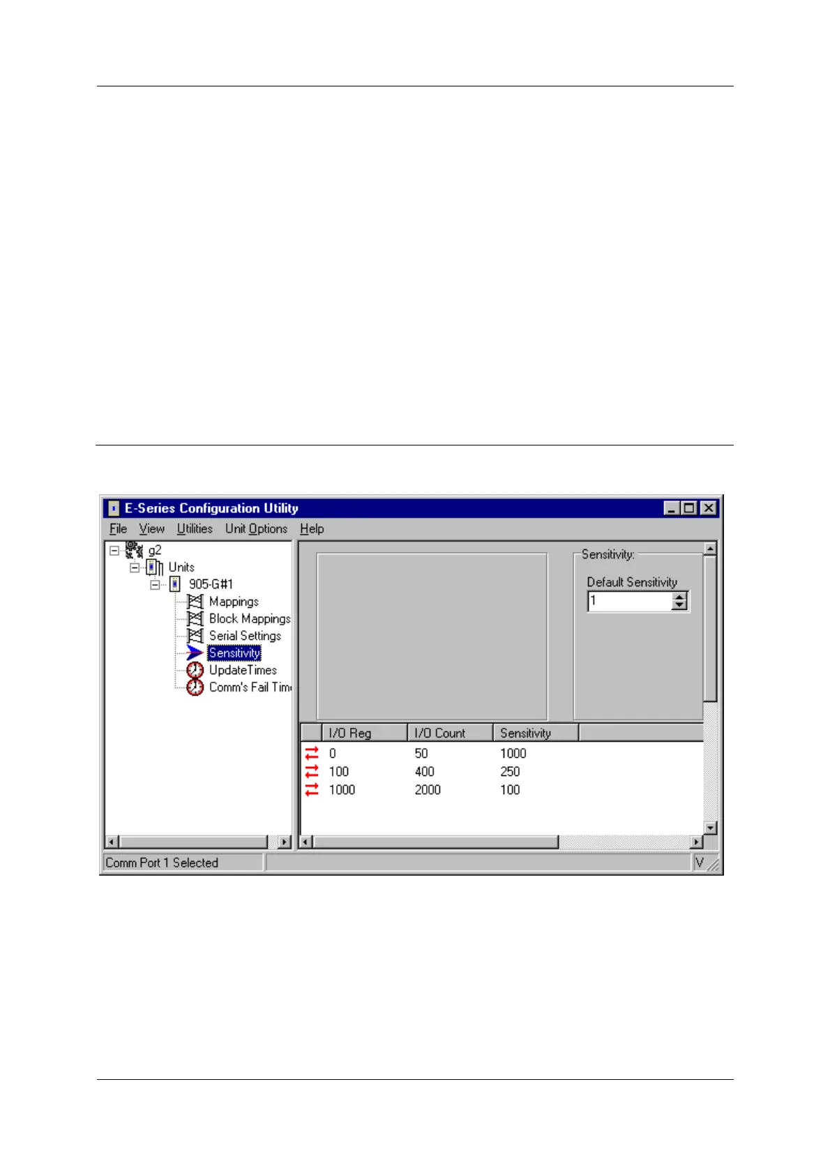 1. I/O registers 0 – 49 have a sensitivity of 1000 (or 1.5% of the 16 bit range)