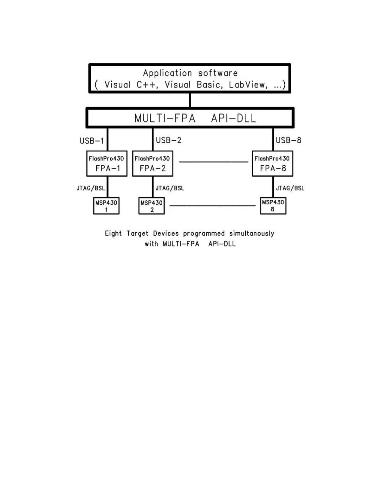 The MSP430FPA.DLL file is transparent for all API-DLL functions implemented in the single FPA