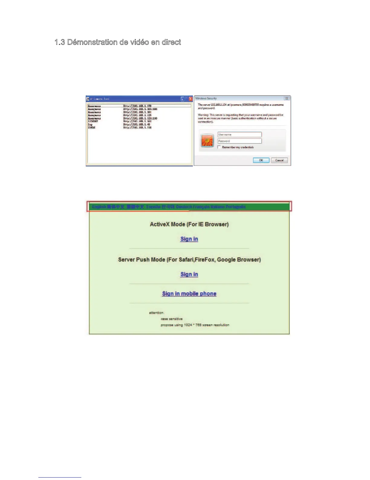 1.3 Démonstration de vidéo en direct