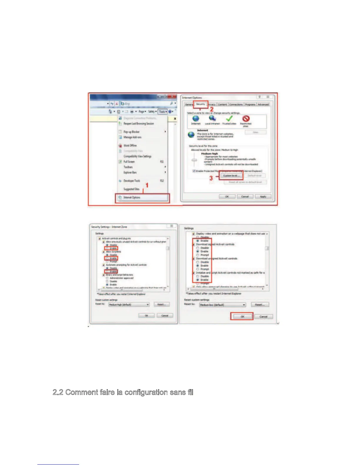 Niveau personnalisé → Contrôles d'ActiveX », et fixez toutes les options d'ActiveX comme