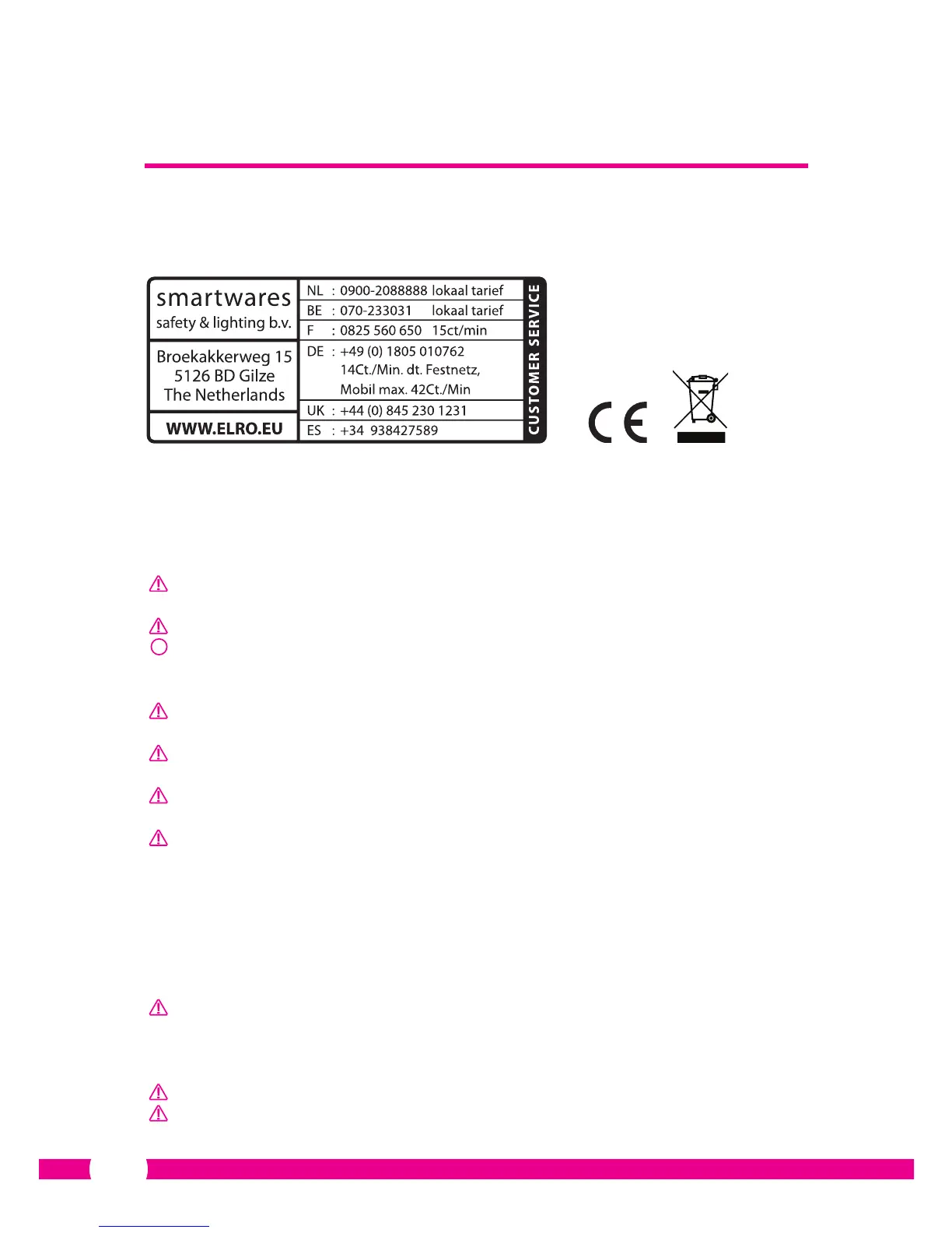 Warning! A warning indicates the risk of (serious) damage to the user or the product if