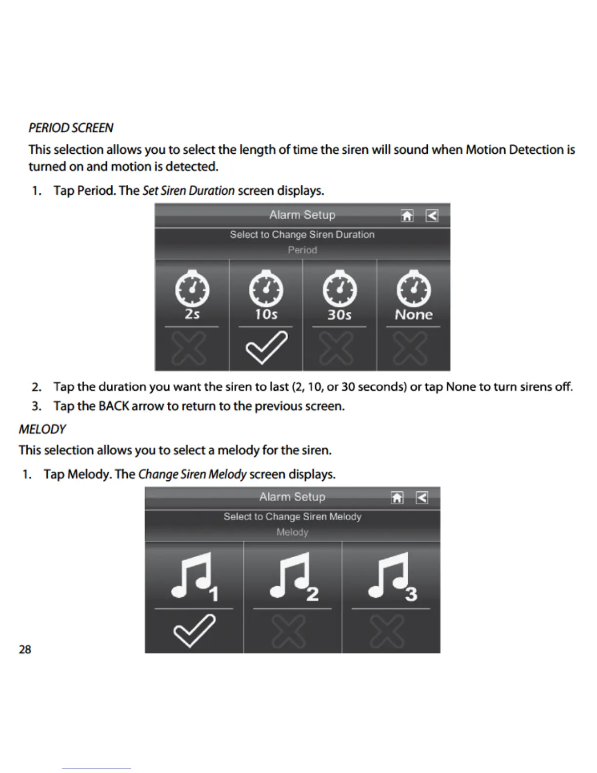 ELRO CS87T - ALARM DURATION SETTING; ALARM MELODY SELECTION