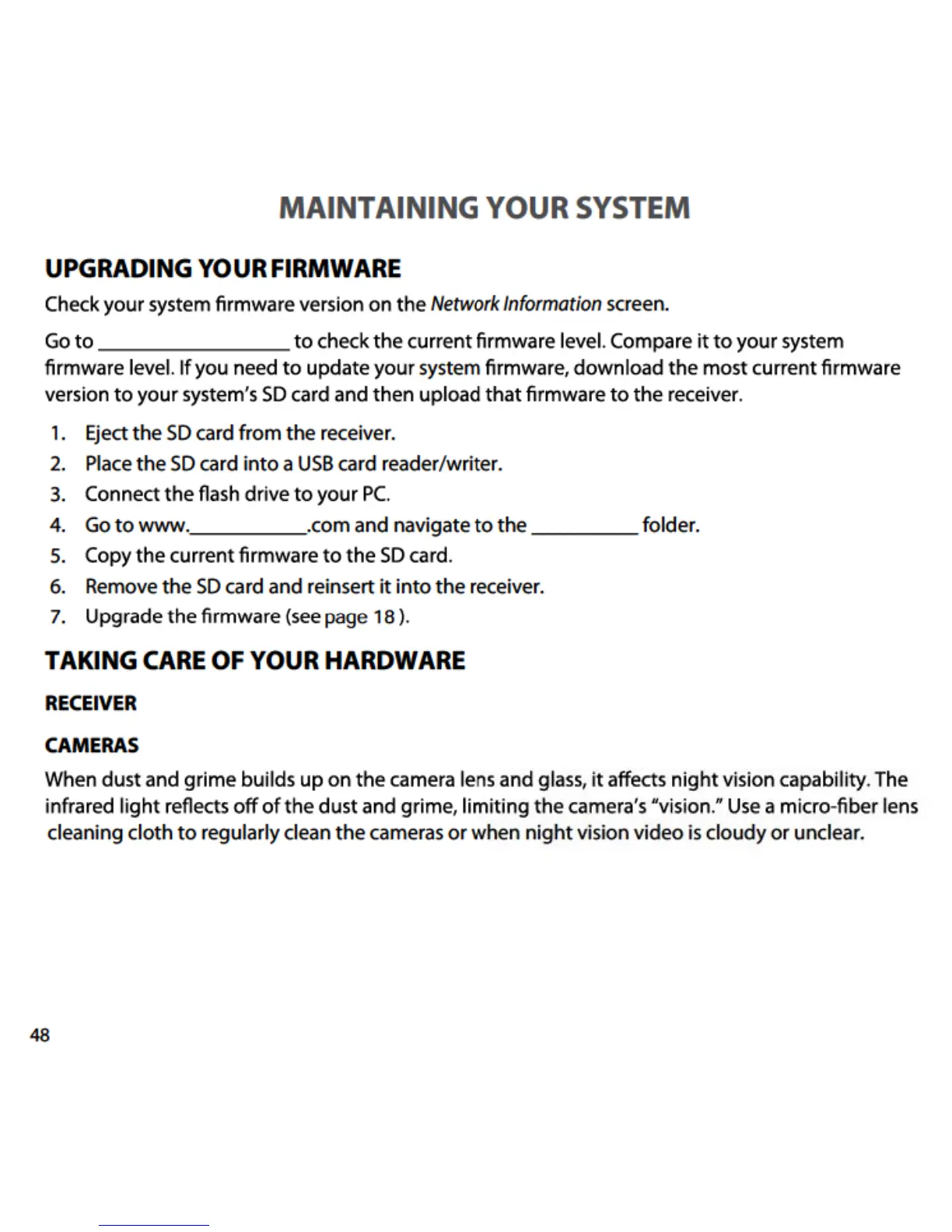 ELRO CS87T - MAINTAINING YOUR SYSTEM; UPGRADING YOUR FIRMWARE; HARDWARE CARE GUIDELINES