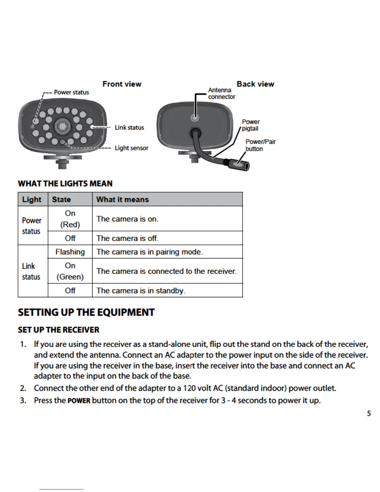 ELRO CS87T - SETTING UP THE EQUIPMENT; SET UP THE RECEIVER