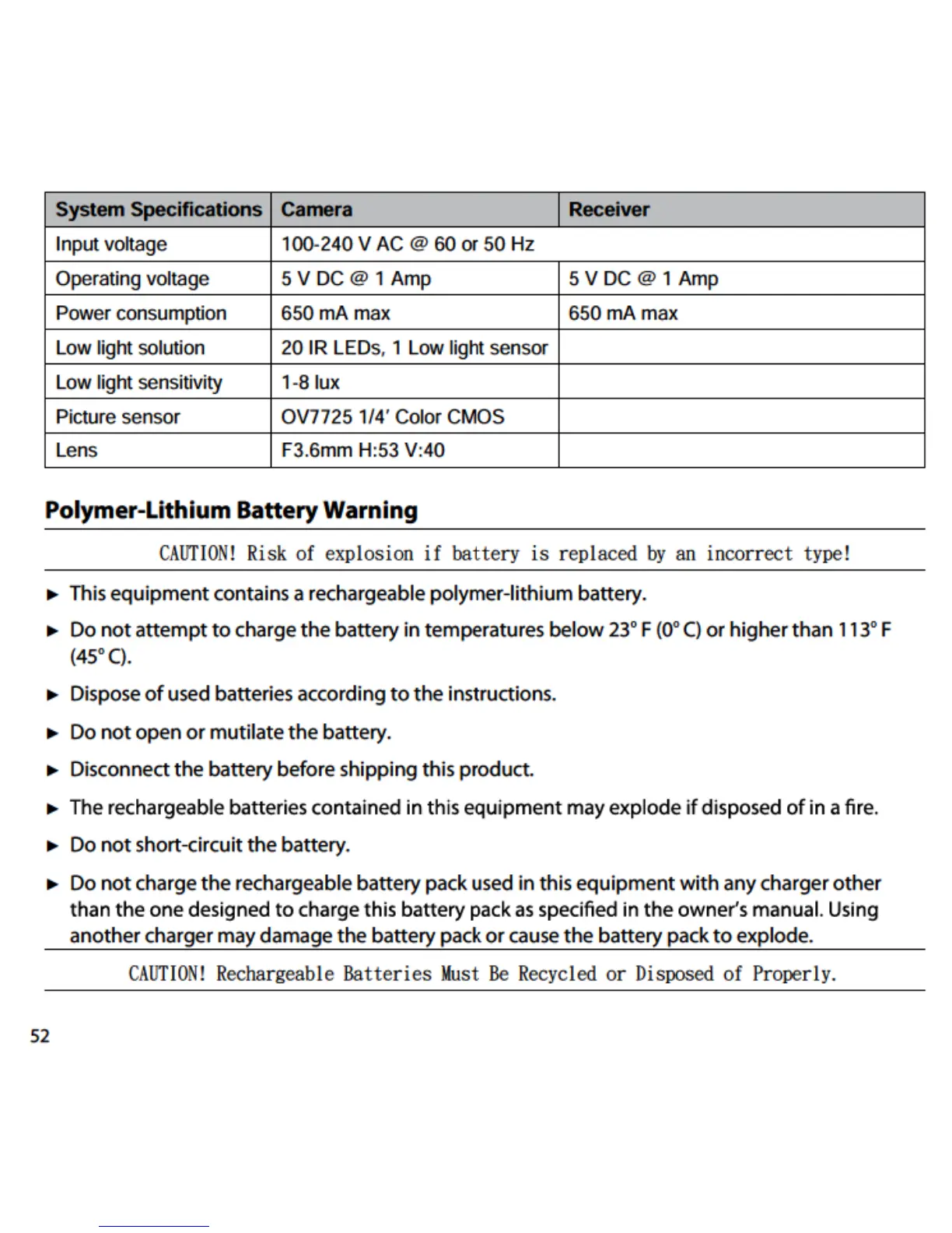 ELRO CS87T - POLYMER-LITHIUM BATTERY WARNING