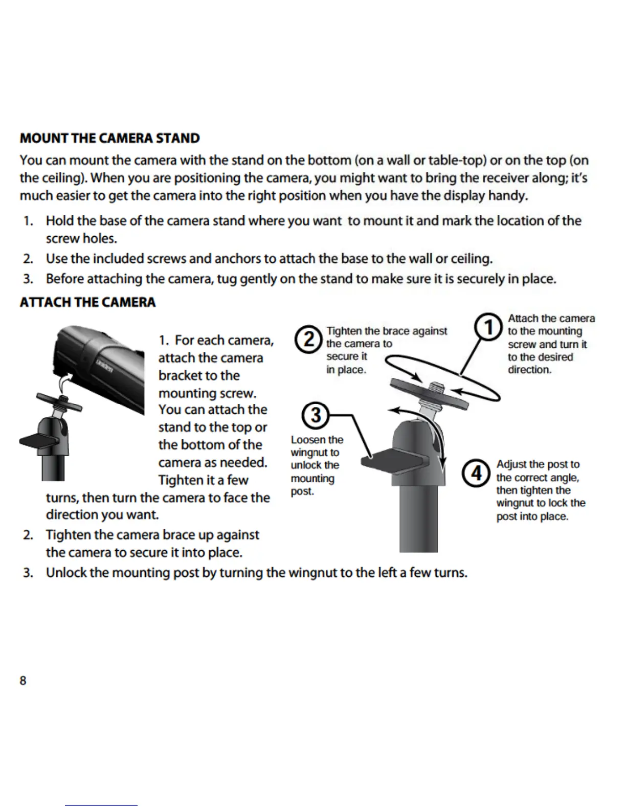 ELRO CS87T - MOUNT THE CAMERA STAND; ATTACH THE CAMERA