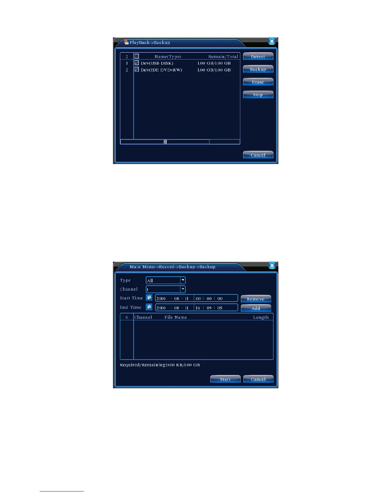 Backup: Click Backup to show the dialog as Figure 3.6. Backup can be setup based on file