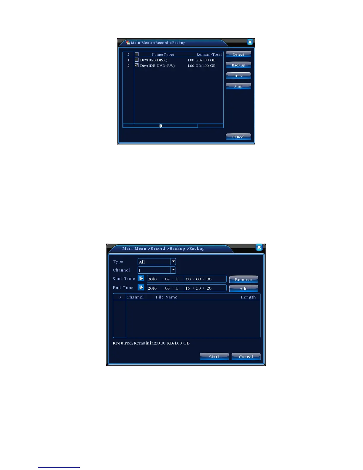Backup: Click Backup to show the dialog as Figure 4.3. Backup can be setup based on file
