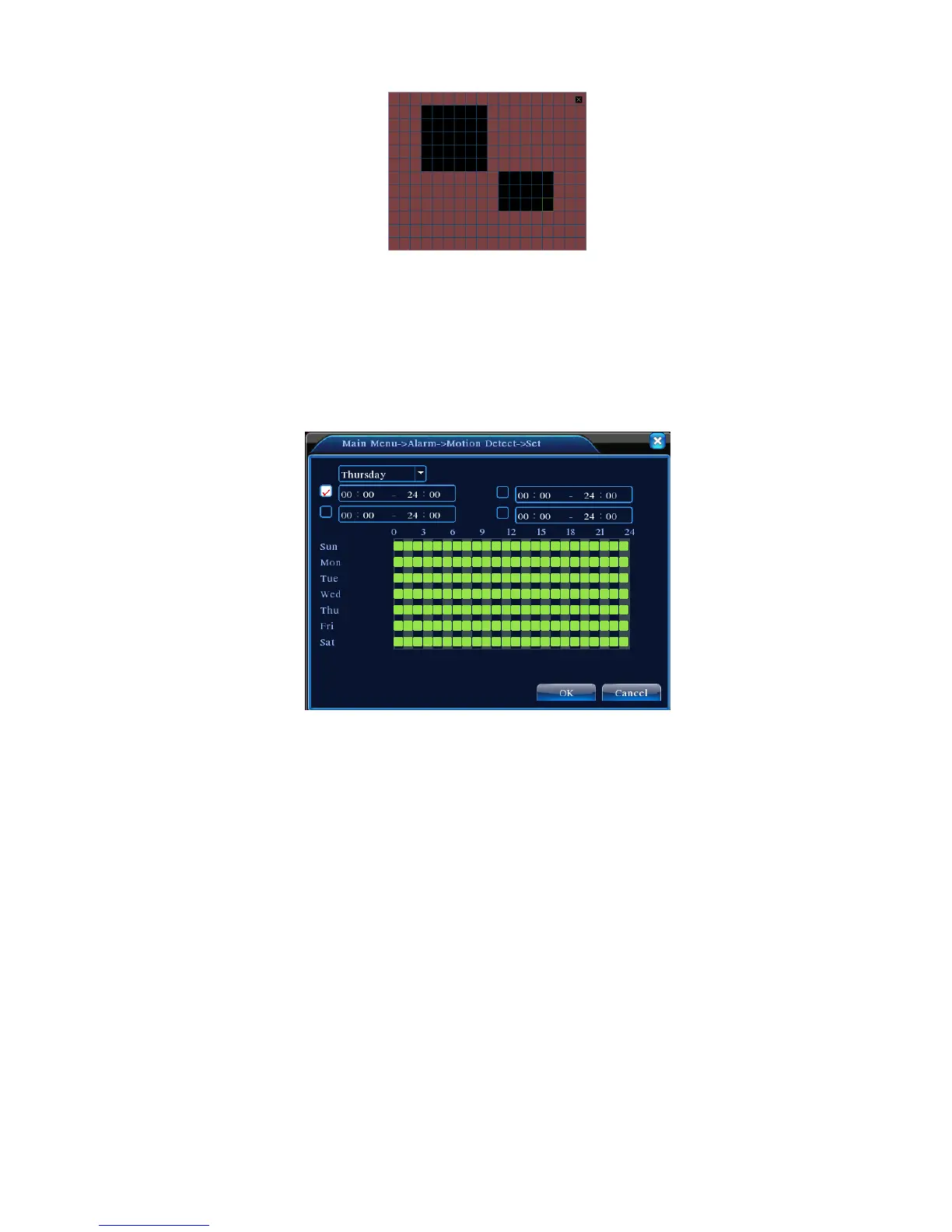 【Arm/Disarm Schedule】 DVR triggers motion detection alarm signal only during the time periods
