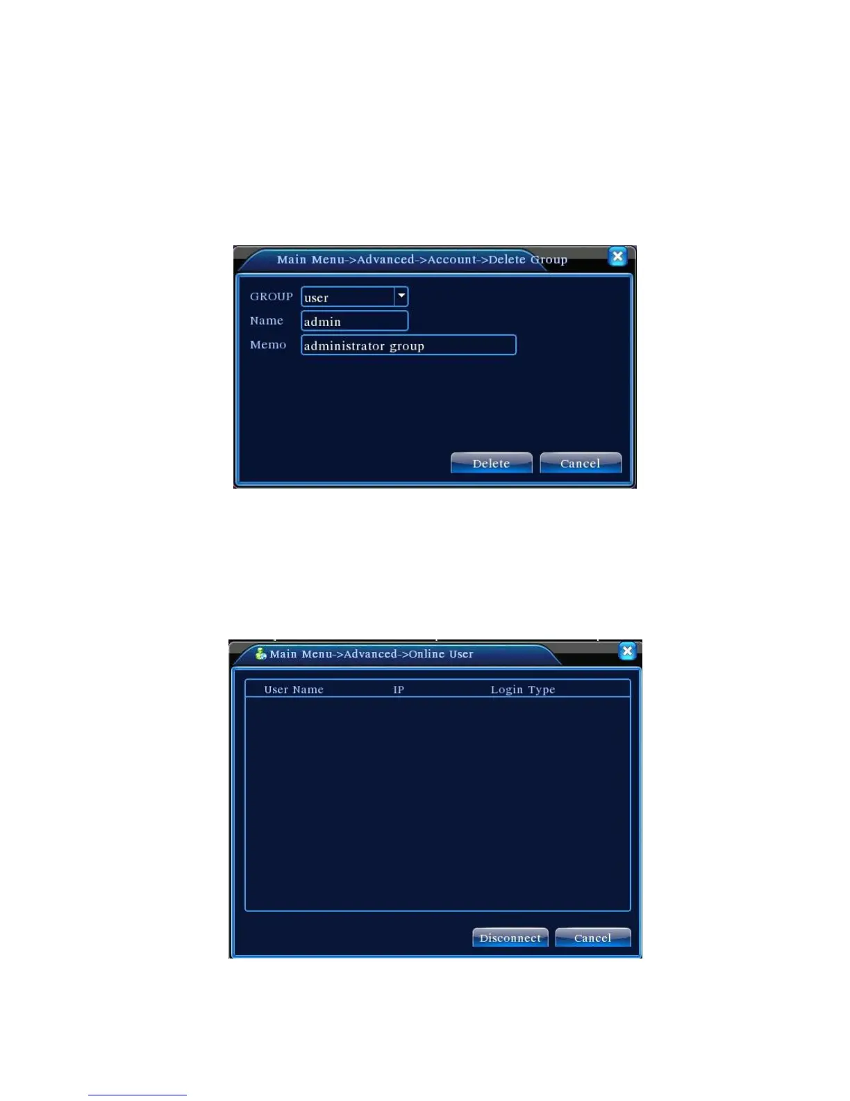【Delete Group】 Delete existing group(make sure there is no user in the group). In Figure 4.29,