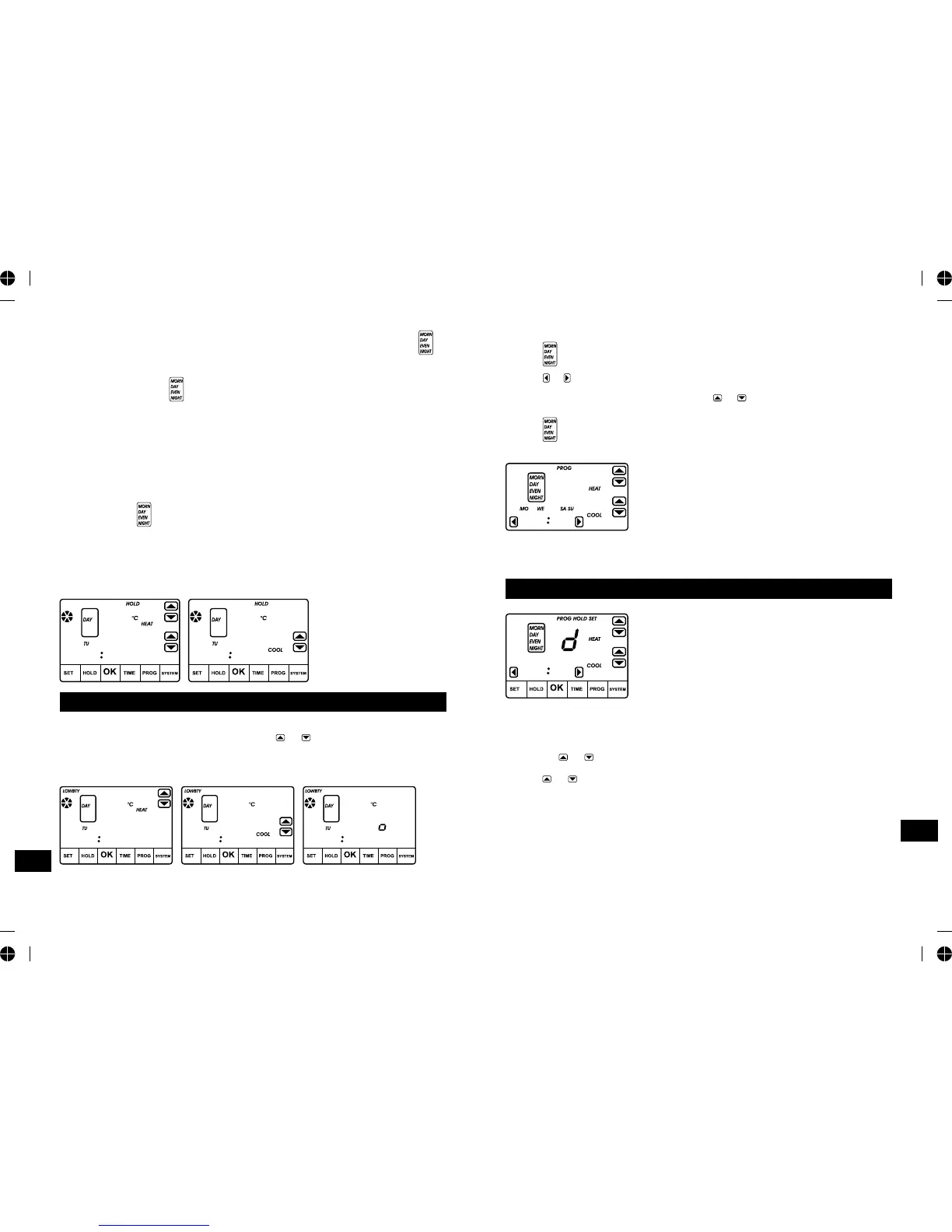 a. First is Temporary Hold setting, Running a set program (HD). Hd displays in the