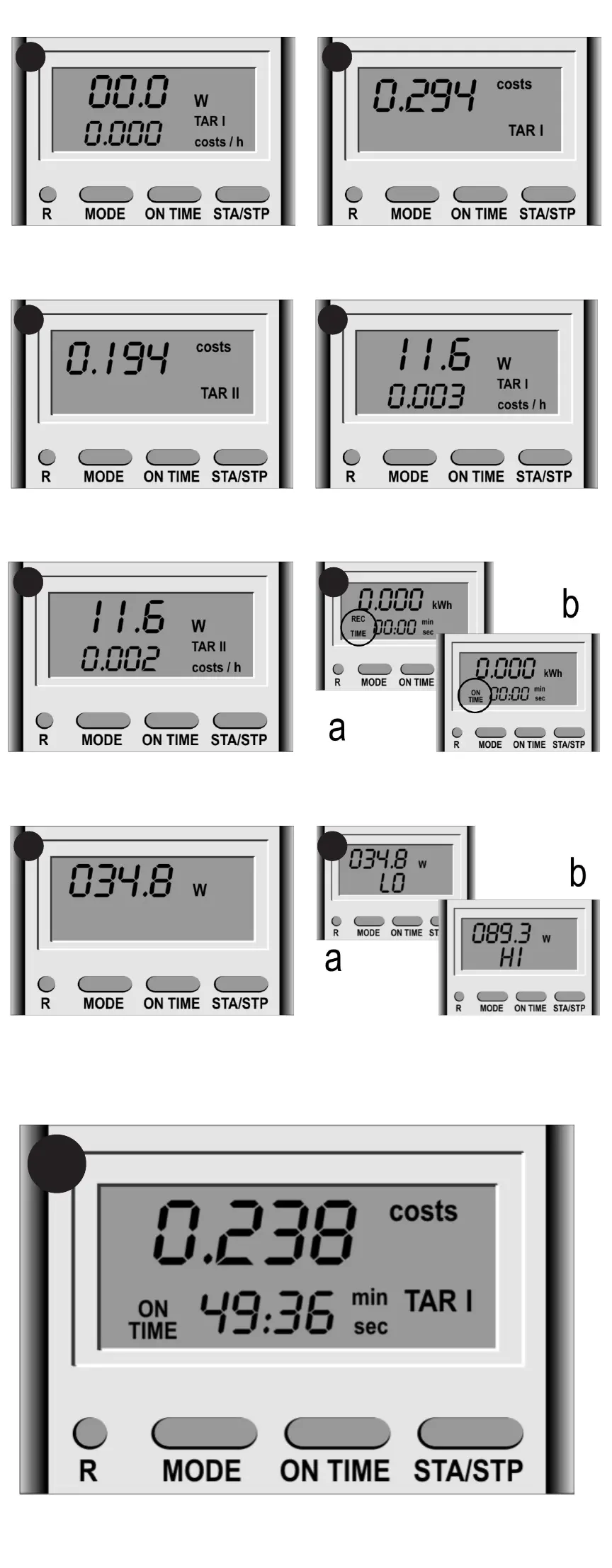 - Az On time felirat jelzi, hogy az óra csak akkor jár, ha fogyasztó