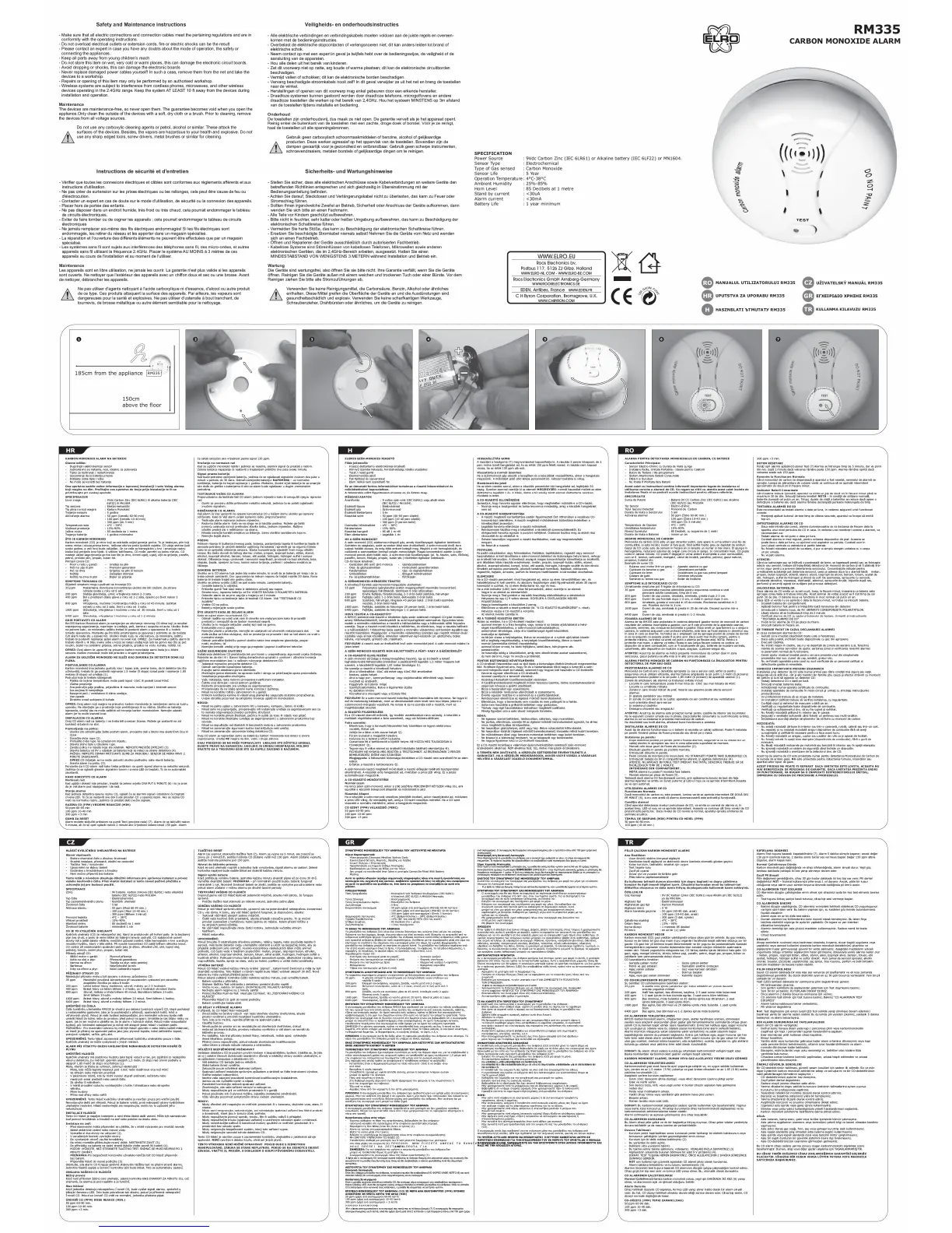 ELRO RM335 - Important Safety Instructions; Installation; Testing; Maintenance and Cleaning