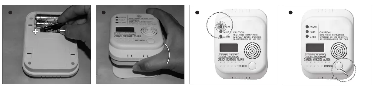CAUTION: This alarm will only indicate the presence of carbon monoxide gas at - Press the Test button to remove the last bit of voltage from the detector.