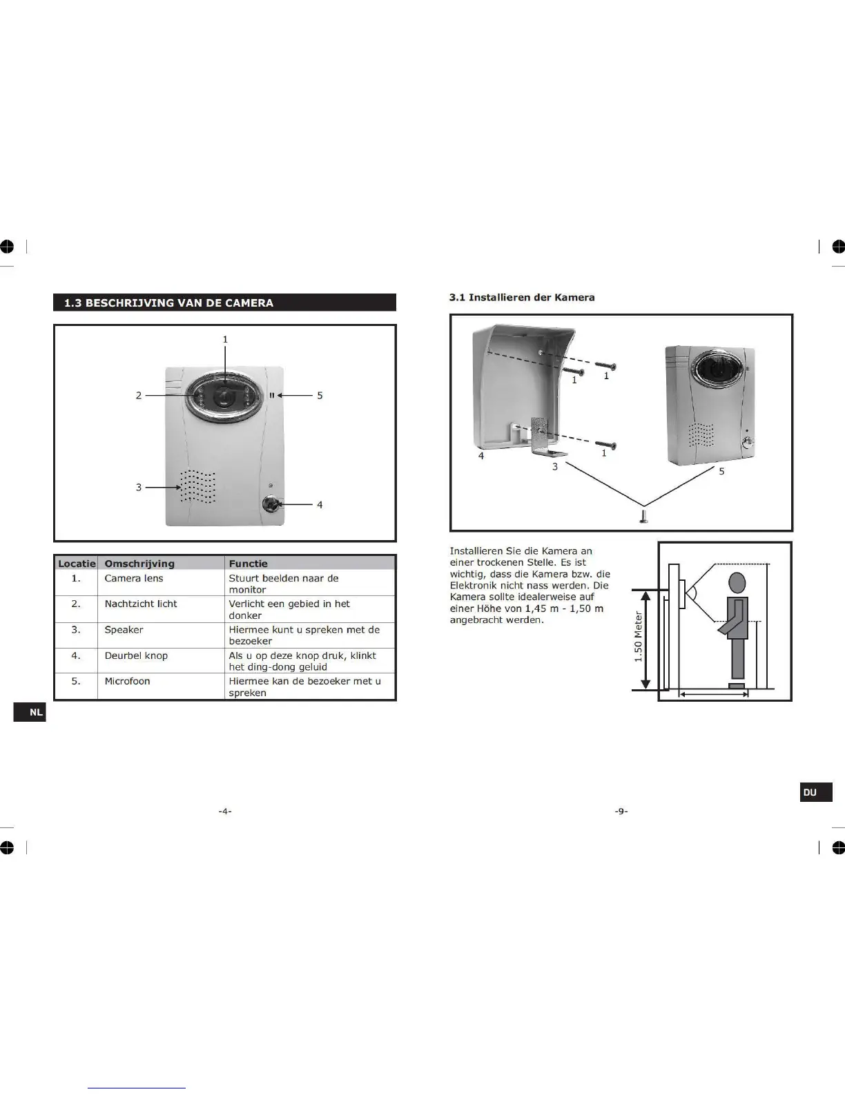 ELRO VD52A - Camera Description; Camera Lens; Camera Installation