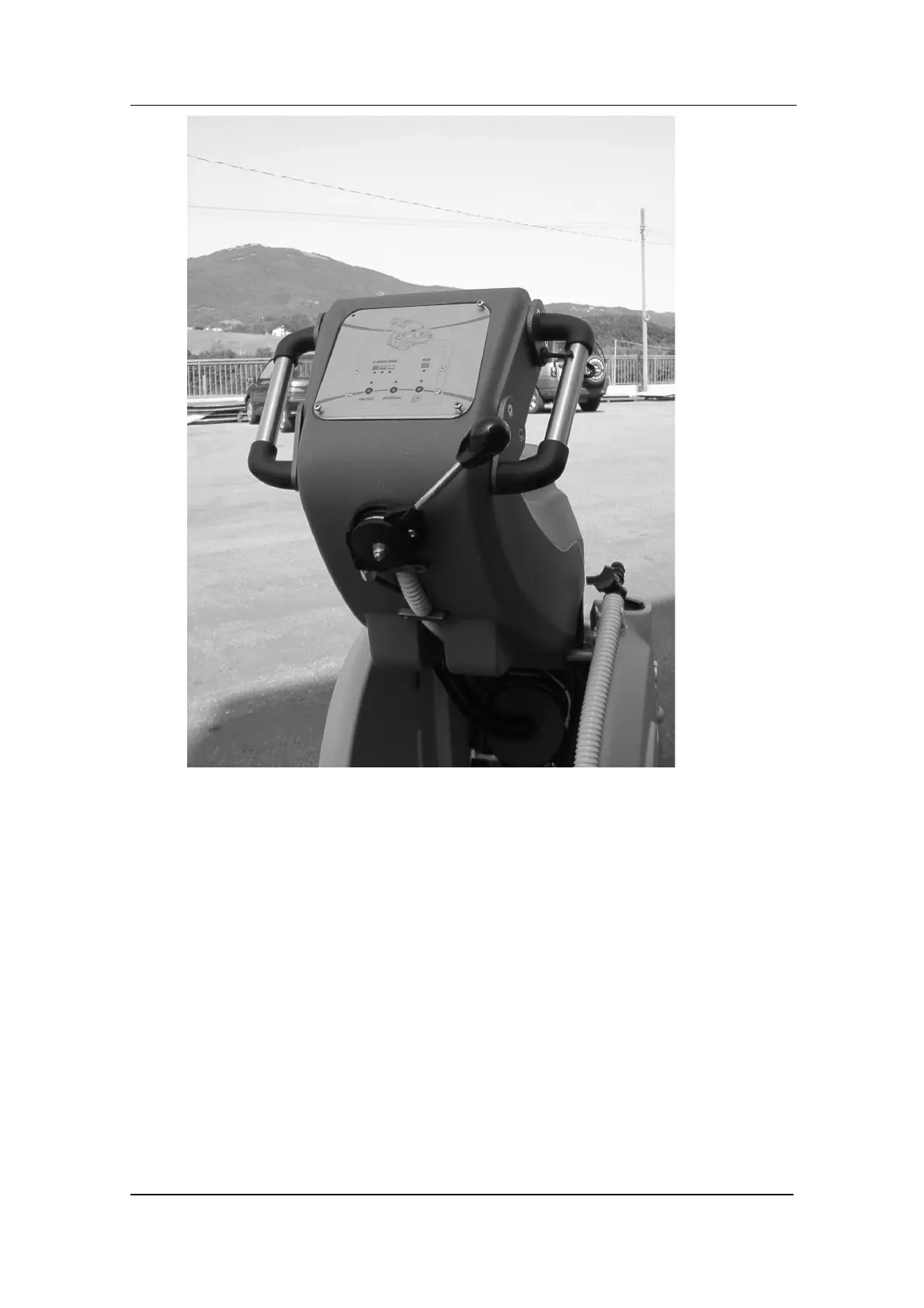 To lift the squeegee use the opposite lever situated on the right handle of the handlebars of