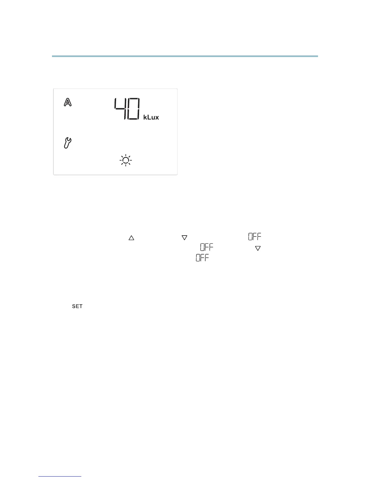 the display shows “1 kLux”. If you select , there is no control in terms of