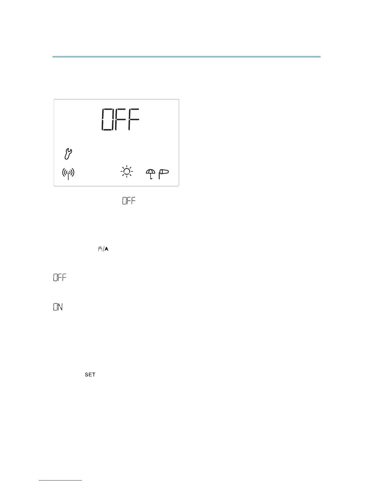 Press the key in order to switch between the displays Off and On.