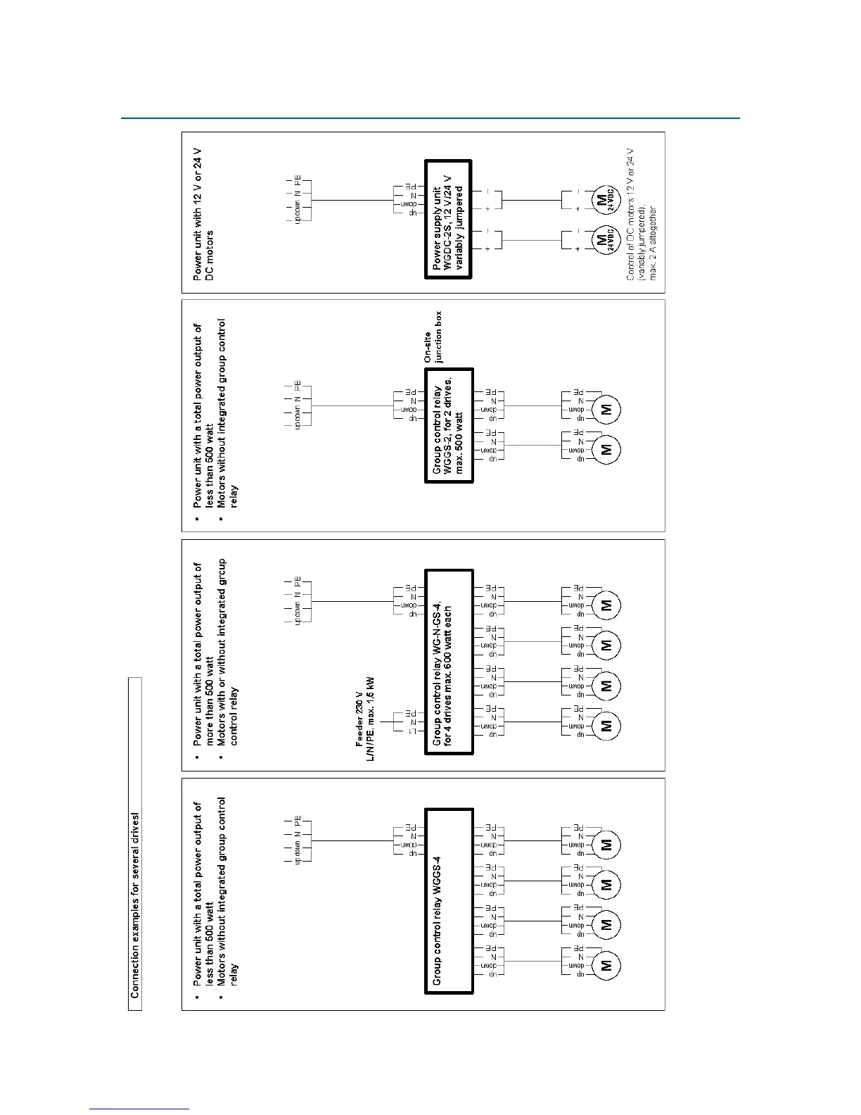Elsner Solexa 230V - Connection Samples for Several Drive Mechanisms as Group