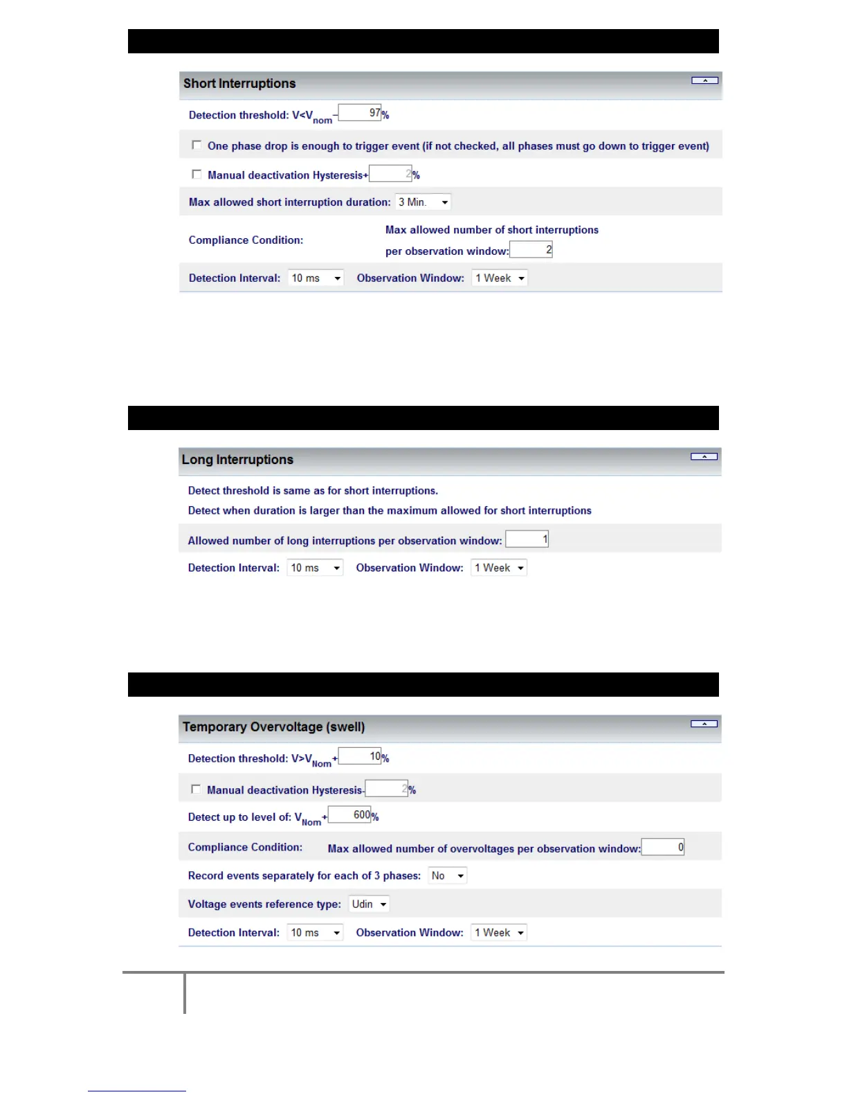 Short interruption is a v oltage dr op of l ess t han 9 7.0% f rom n ominal ( event