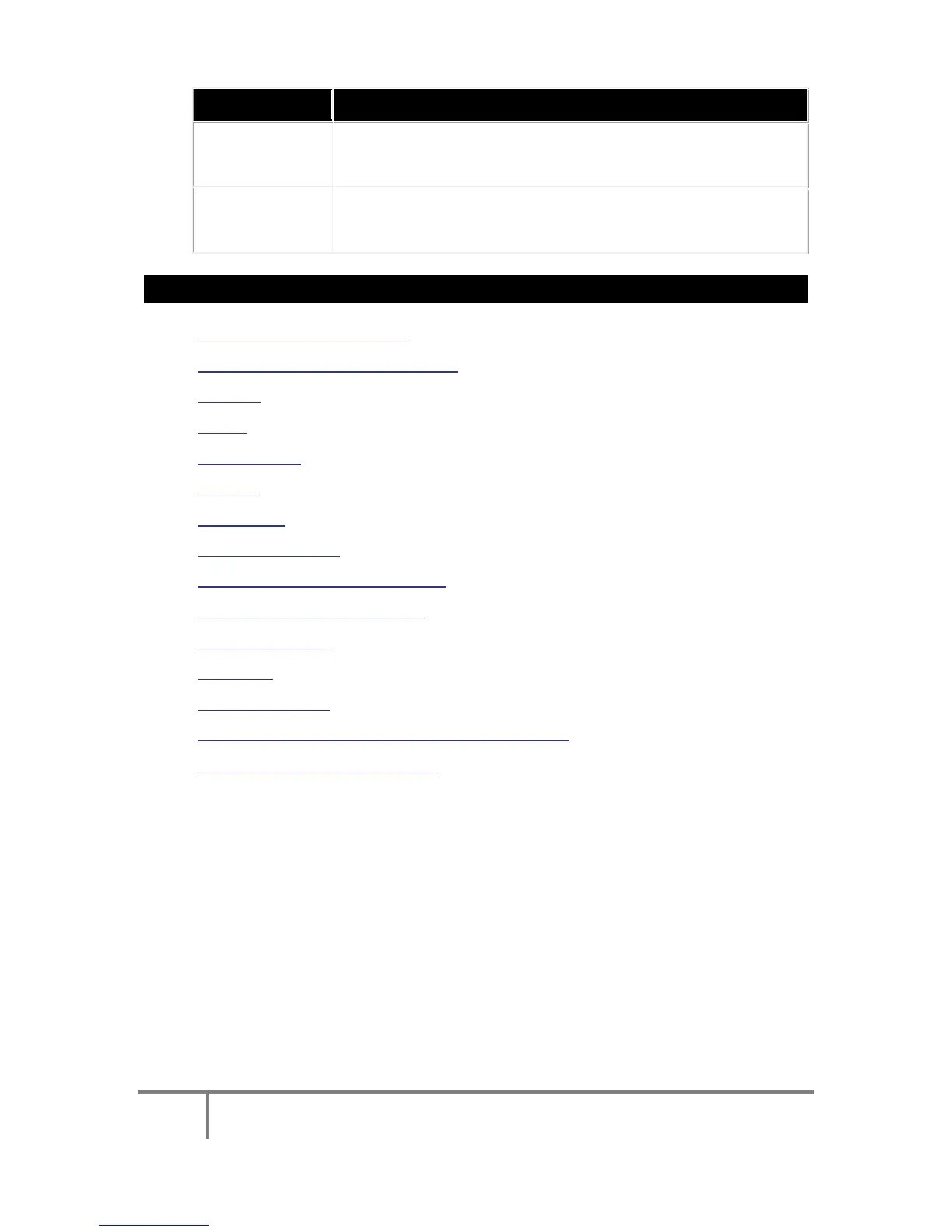 The table outlines the sections' Parameter options (for your selection)