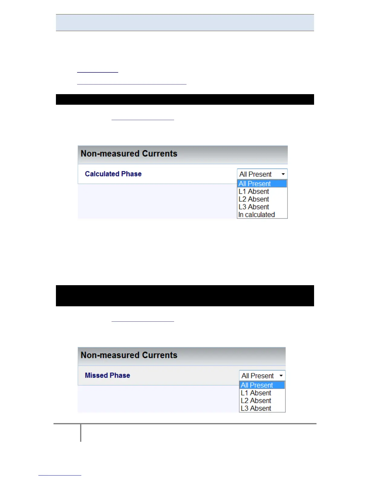 In th e Non-Measured Currents section, sele ct t he ap plicable p hase t o be