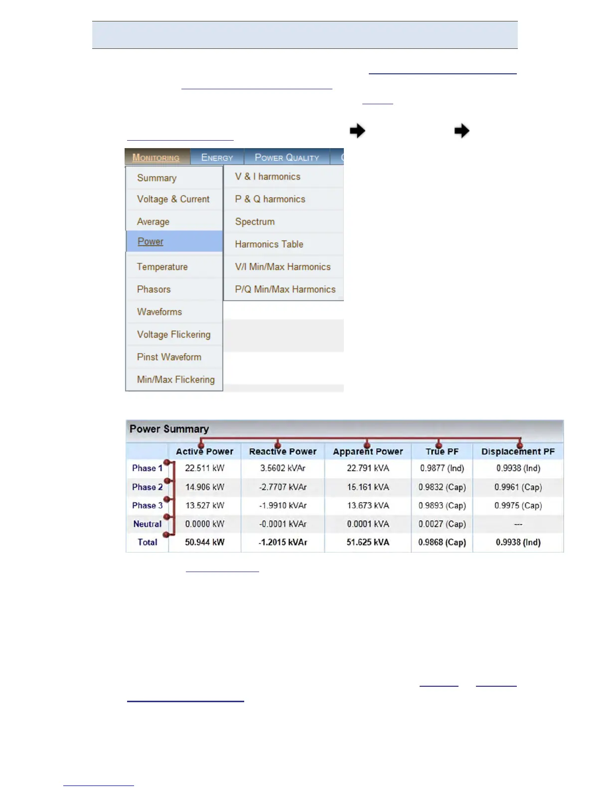 This p age d isplays s pecific v alues f or t he different Electrical P ower P arameters