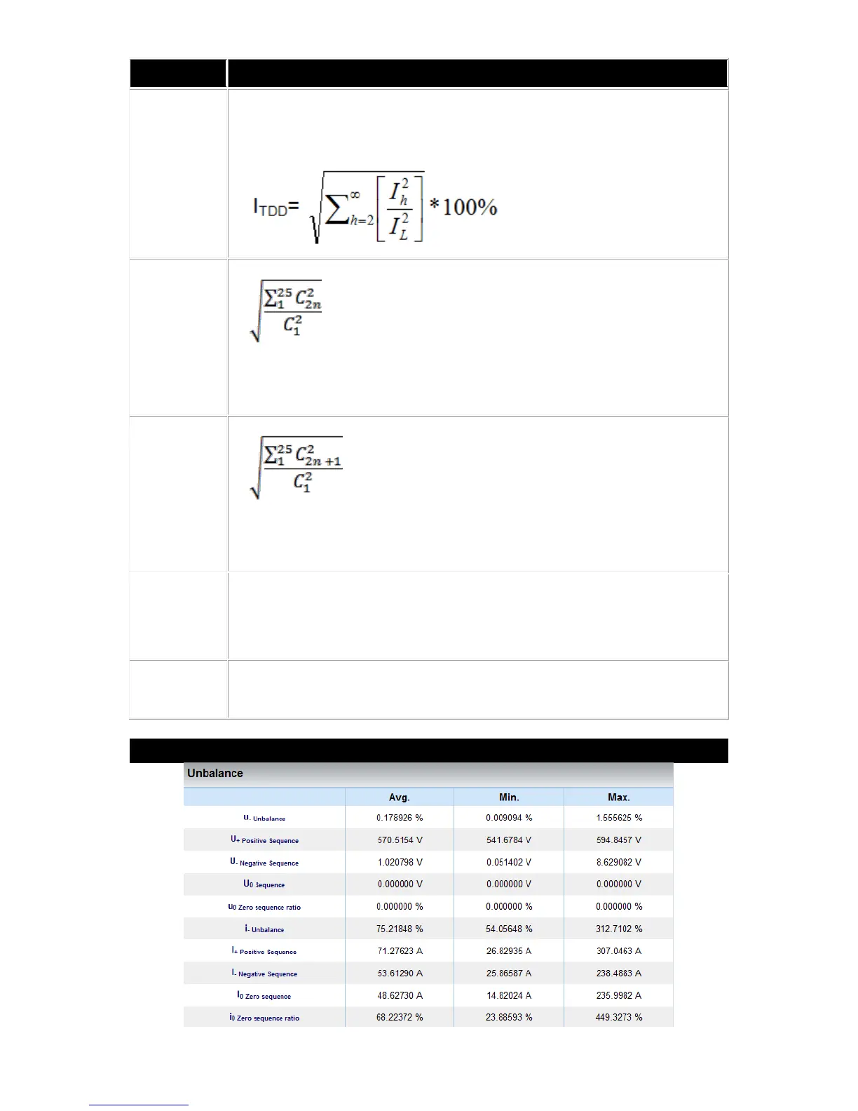 UNBALANCE SECTION (AVG, MIN, MAX)