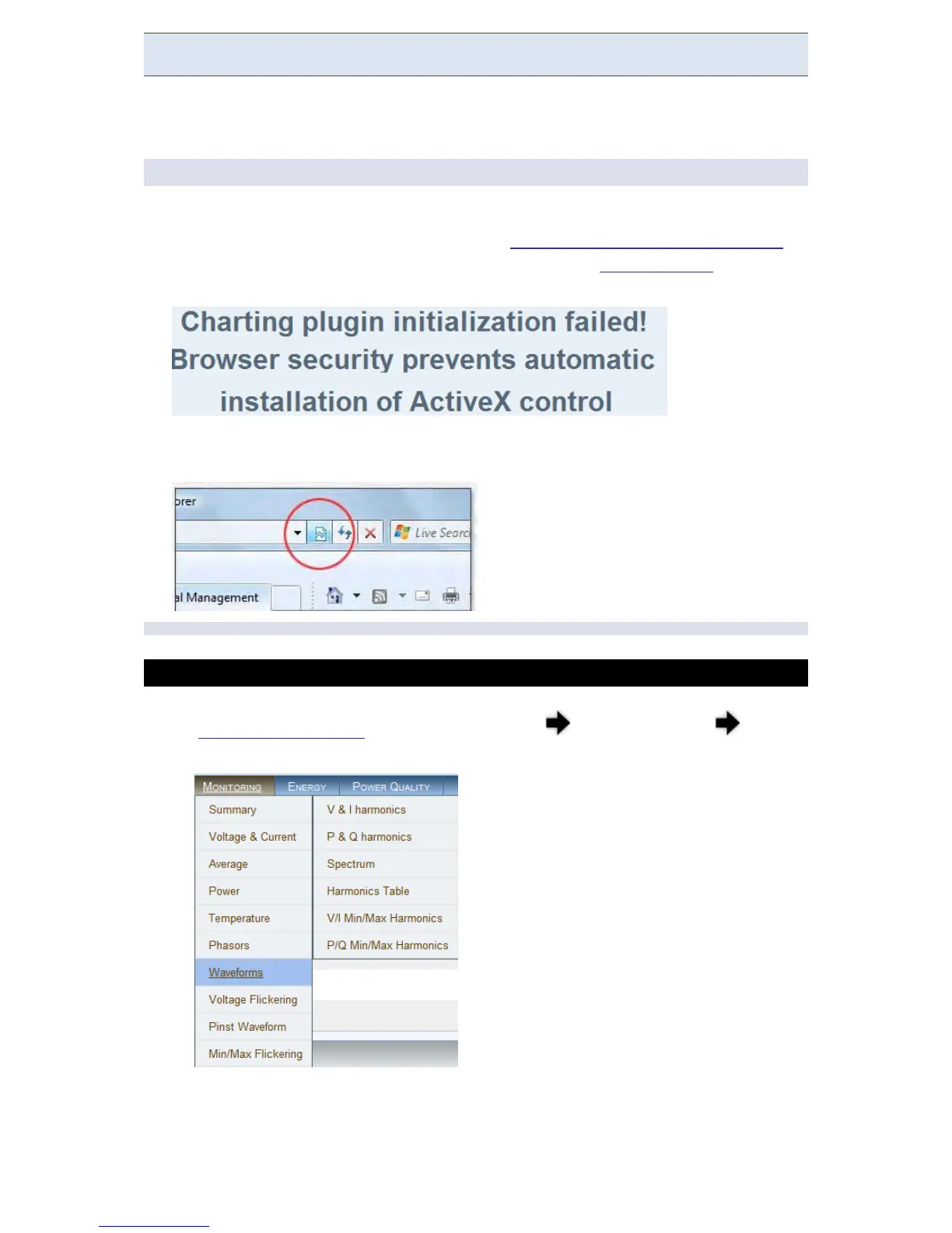 In order to display the Phasor graph, ensure that you install the ActiveX plug-in