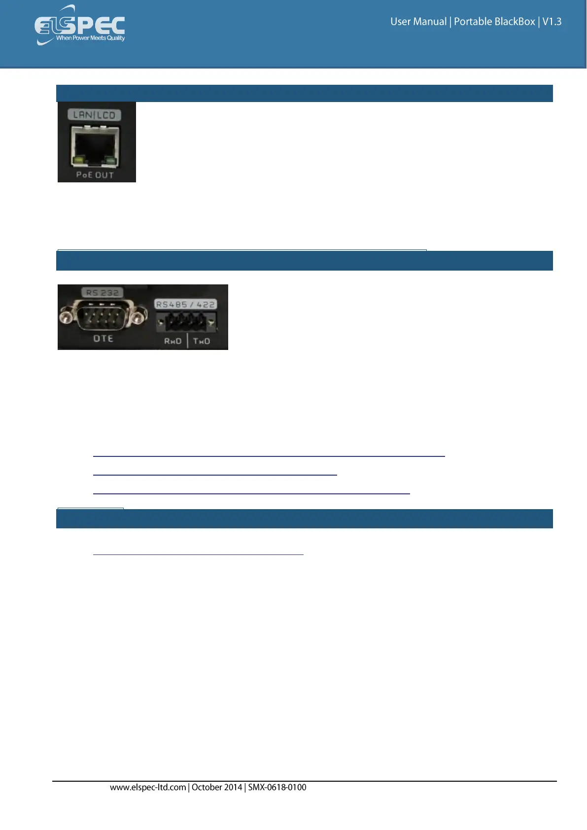 The Portable BLACKBOX is equipped with 2 isolated Serial Communication interfaces, namely: