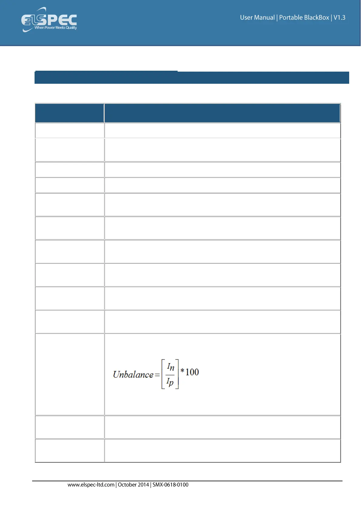 This entry displays the Average Maximum/Minimum Unbalanced Values at