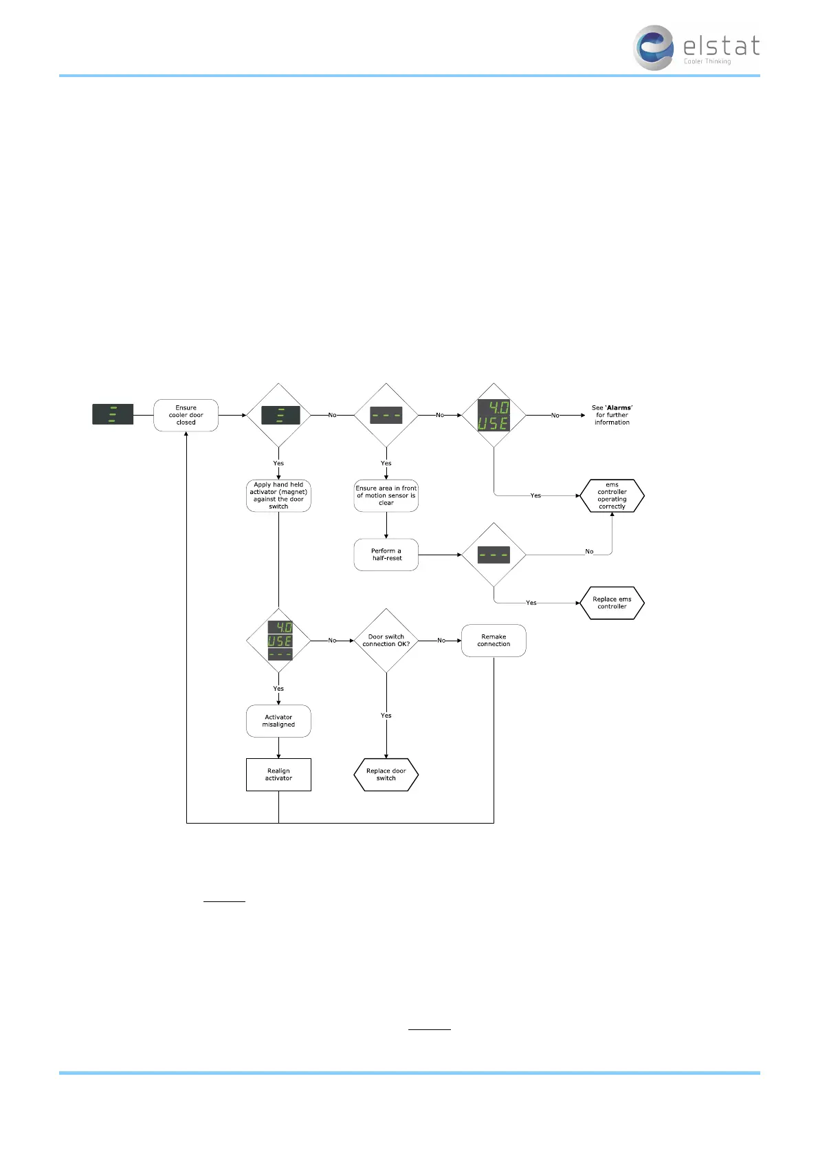 Follow the chart to troubleshoot door open alarms on coolers without a door switch fitted.