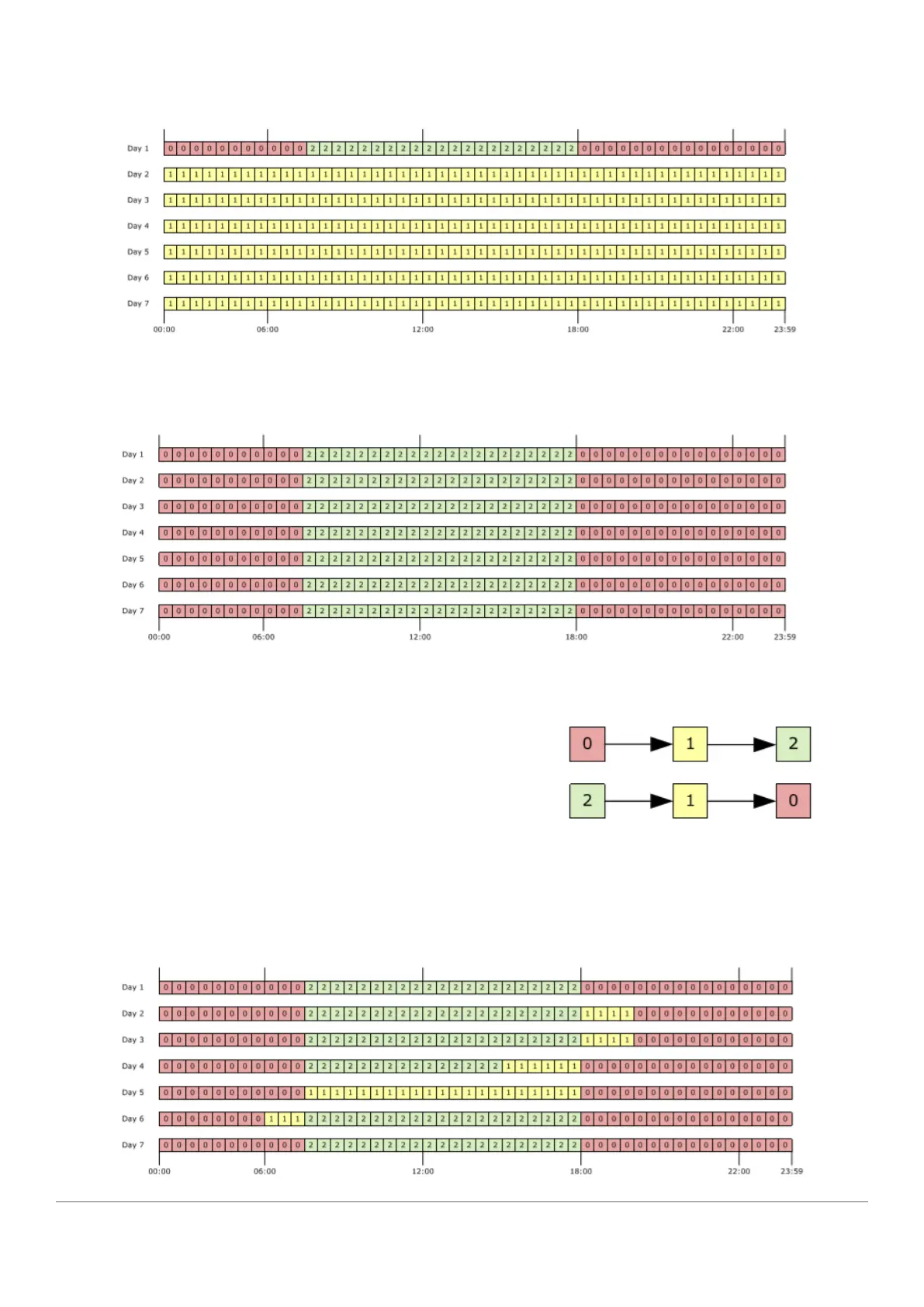 Therefore, at the end of day 1 (first 24-hours), the ems controller has set all the 30 minutes to ready (2) or saving (0)