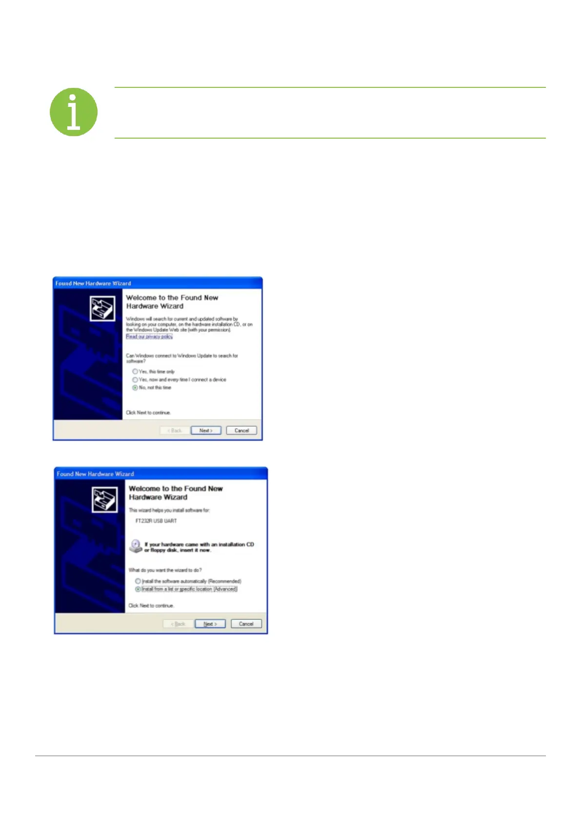 For Windows XP, install the drivers as follows: