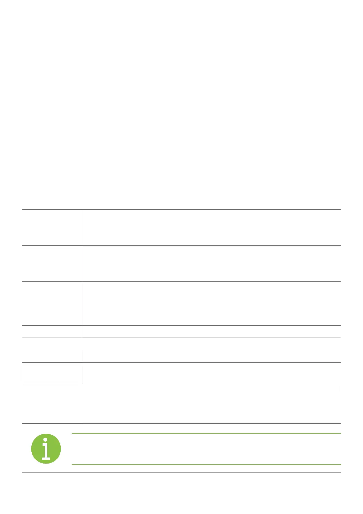 The table below details the parameters grouped by function