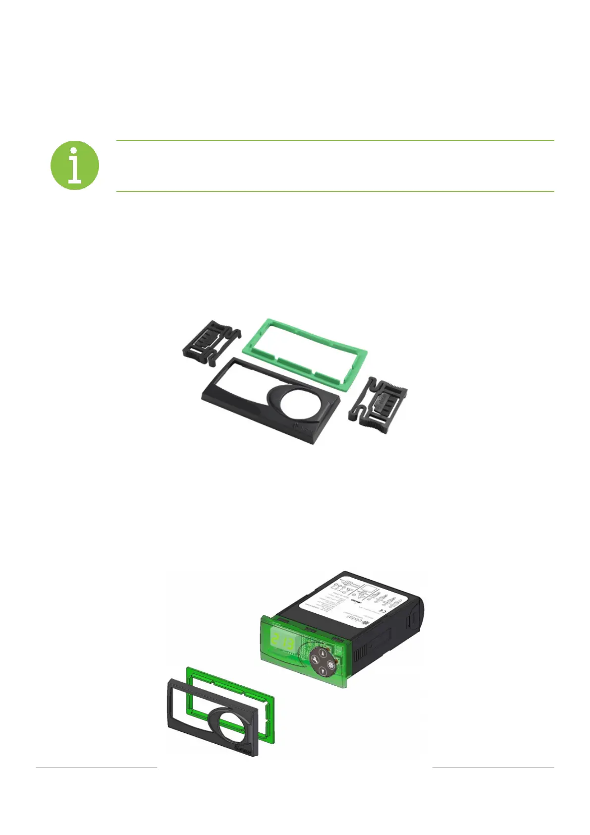1. Fit the small decorative trim and gasket to the controller as shown: