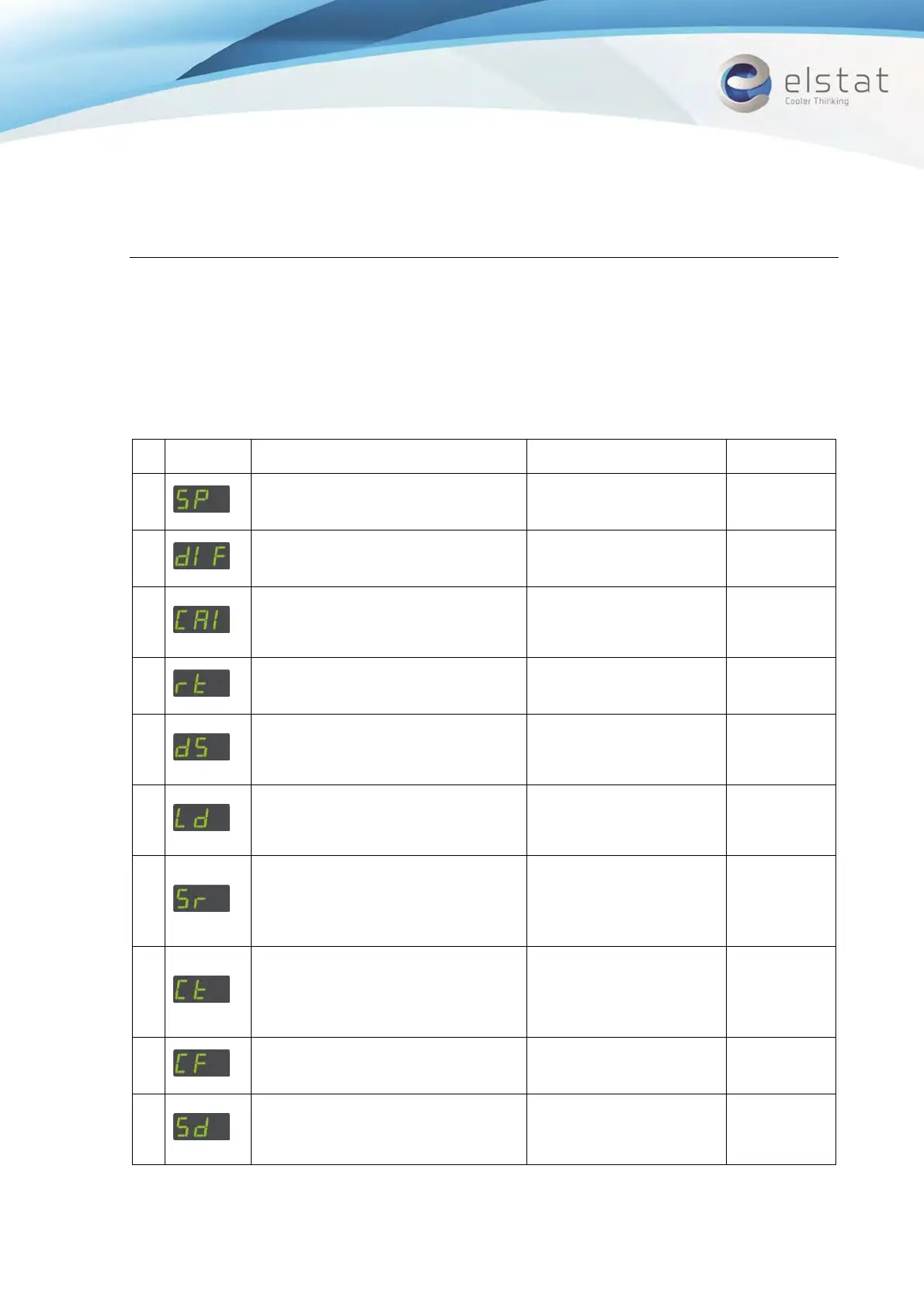 The following table details the parameter set for the ems75vr series of controllers including: