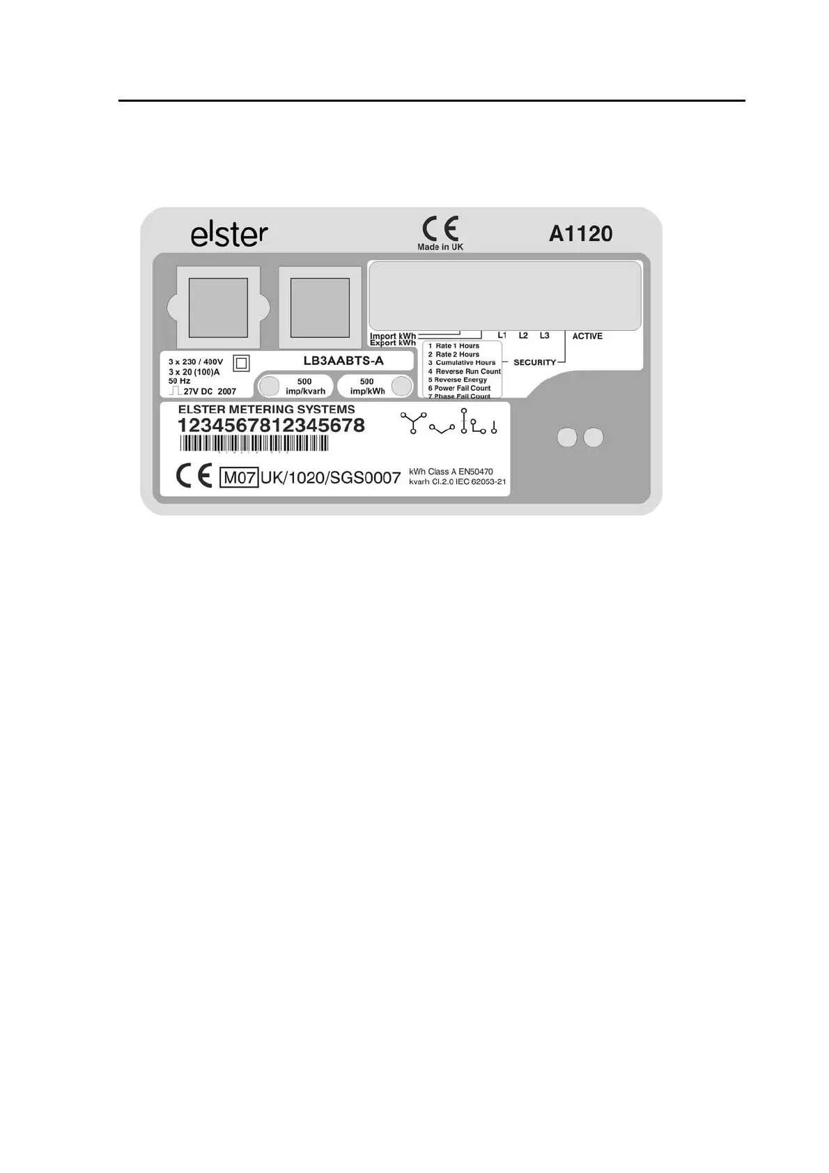 Elster A1140 - N Ameplate