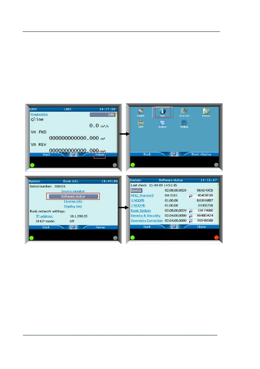 Figure 9-2: Checking software versions and checksum through the front panel