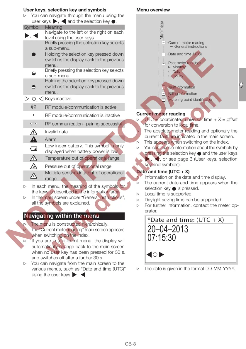▷ In each menu, the meaning of the symbols for