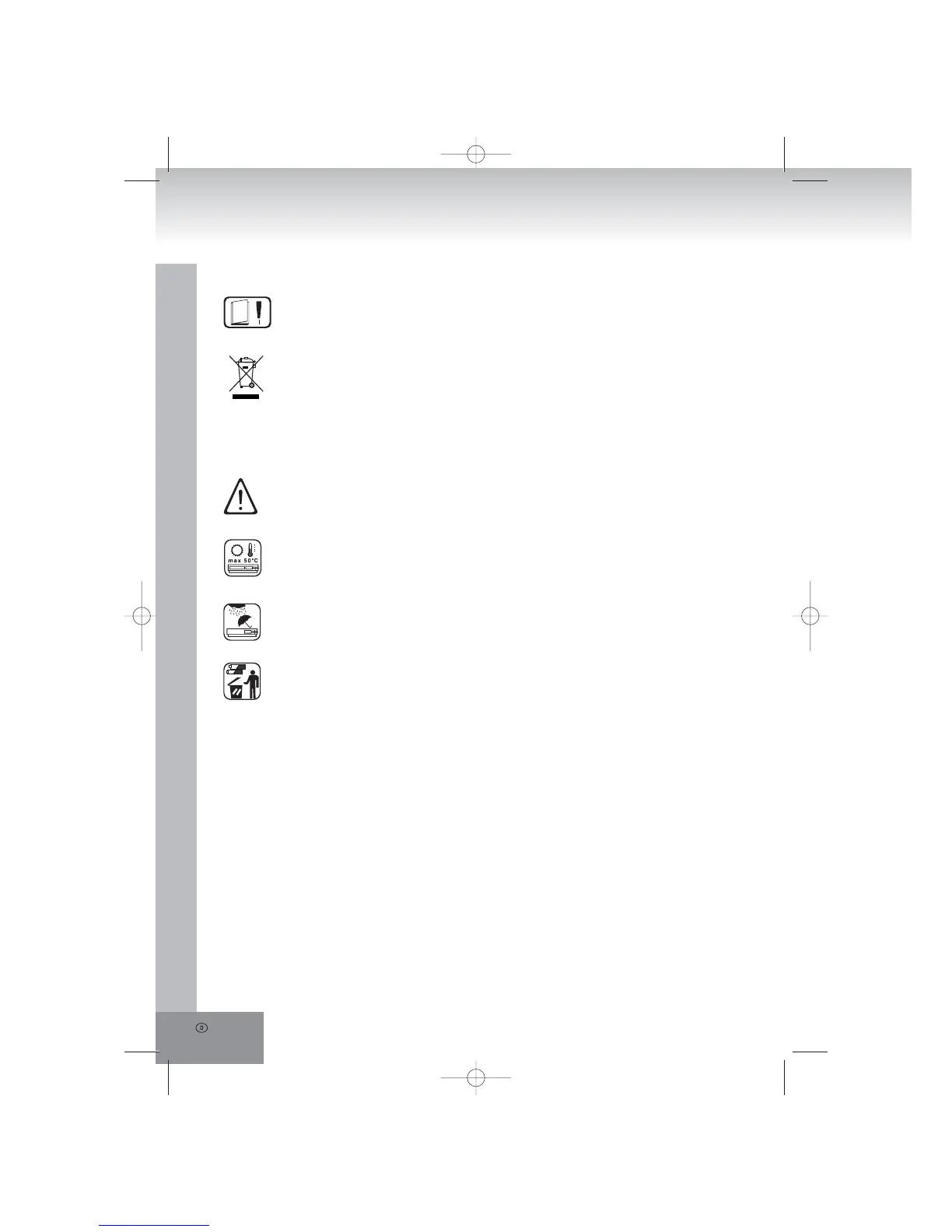 Dieses Gerät ist nicht wassergeschützt! Nicht mit Wasser in Berührung bringen. Zur Reinigung nur ein leicht