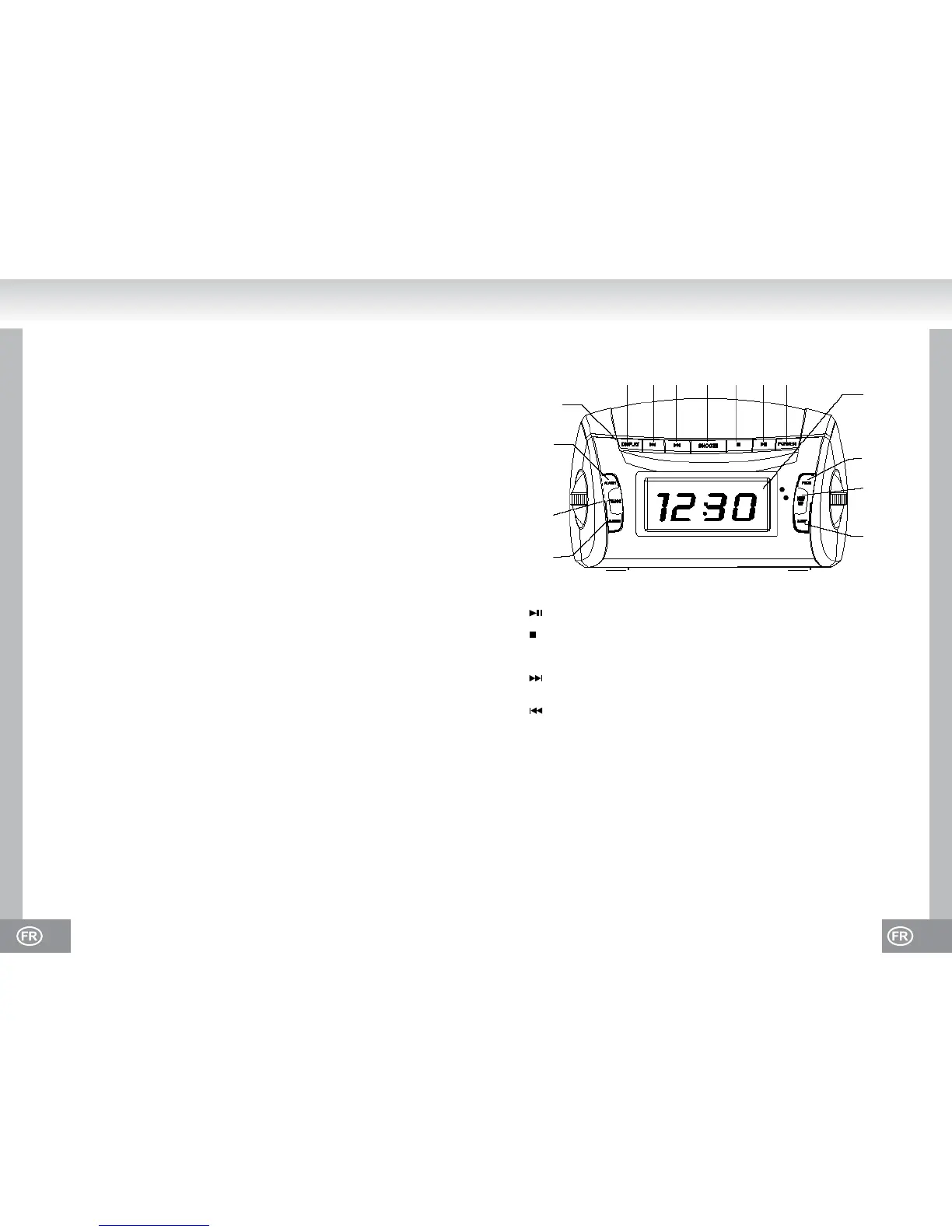 Affiche l’horloge/ l’heure de l’alarme ou des informations CD-/Radio-