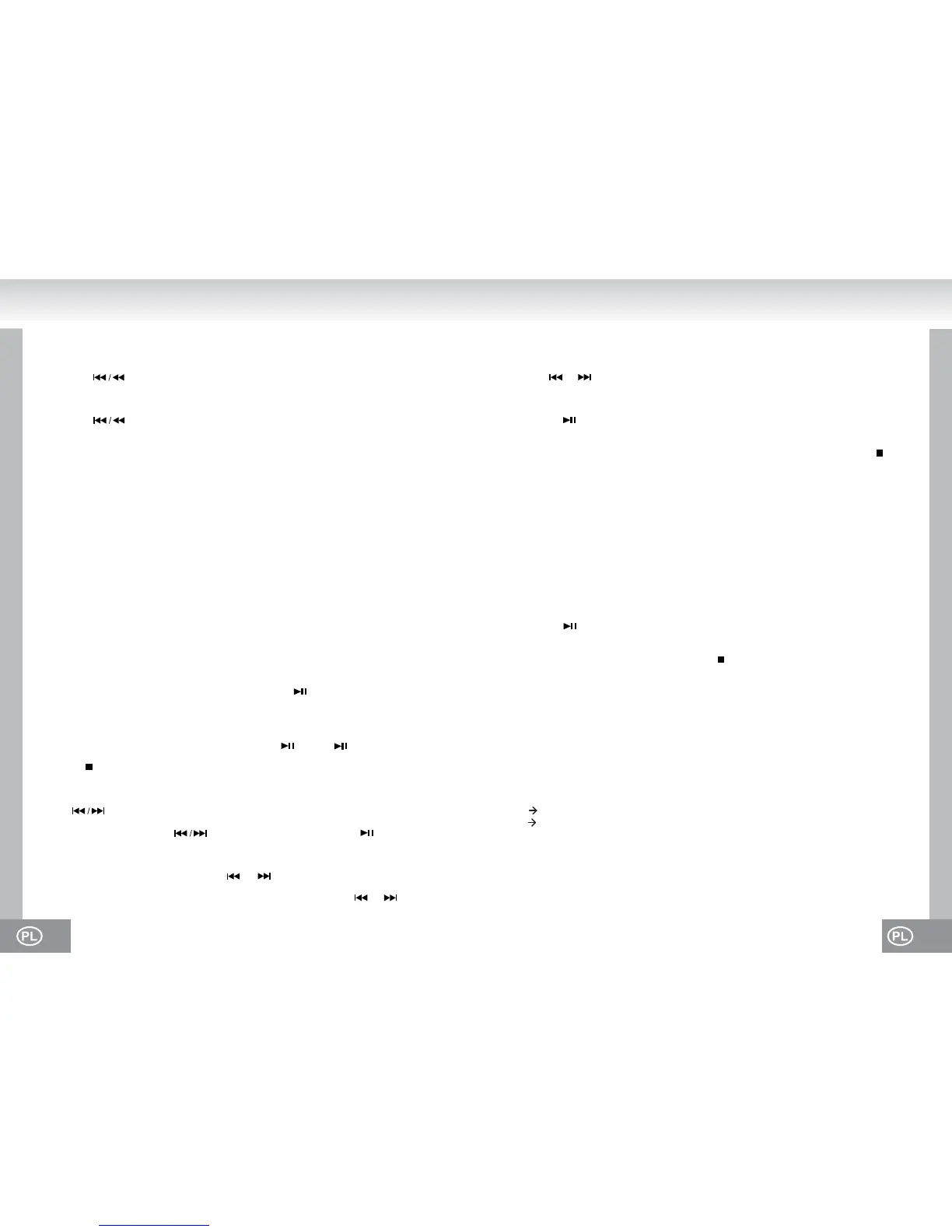 • W trybie zatrzymania, naciśnij aby wybrać utwór i następnie naciśnij aby rozpocząć
