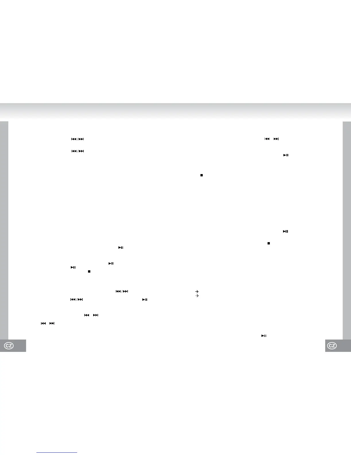 • Pro přeskočení na předchozí či následující stopu použijte tlačítko . Na displeji se zobrazí